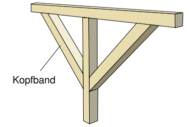 Das Kopfband, auch Bug, ist das konstruktive Kantholz einer Holzkonstruktion, dass als schräg liegendes Element am Knotenpunkt zweier rechtwinklig aufeinander treffender Traglieder (zb Pfette / Pfosten) angeordnet liegt.