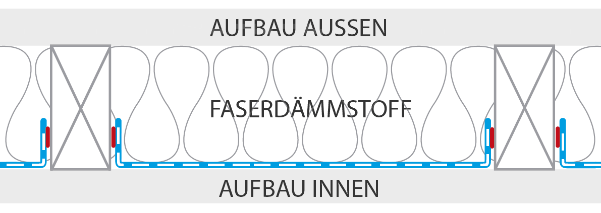 • Luftdichtheitsschicht (oberhalb Tragkonstruktion) sd ≤ 0,1 m