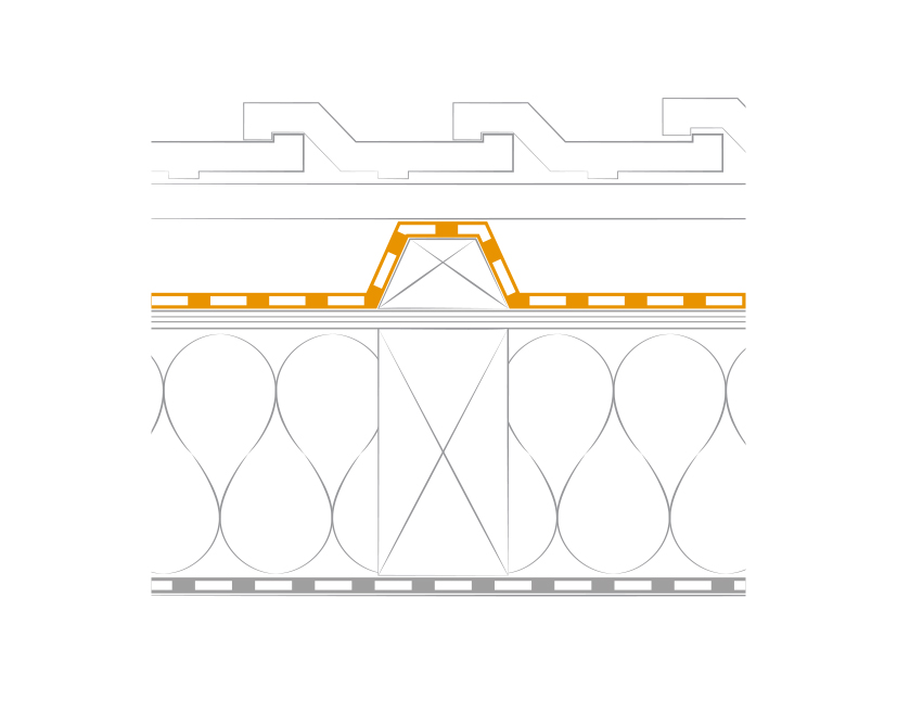| Beschreibung | Einbindung der Konterlatte: bei herkömmlicher Bitumenbahn – es müssen Trapezlatten aufwendig umschlauft werden |