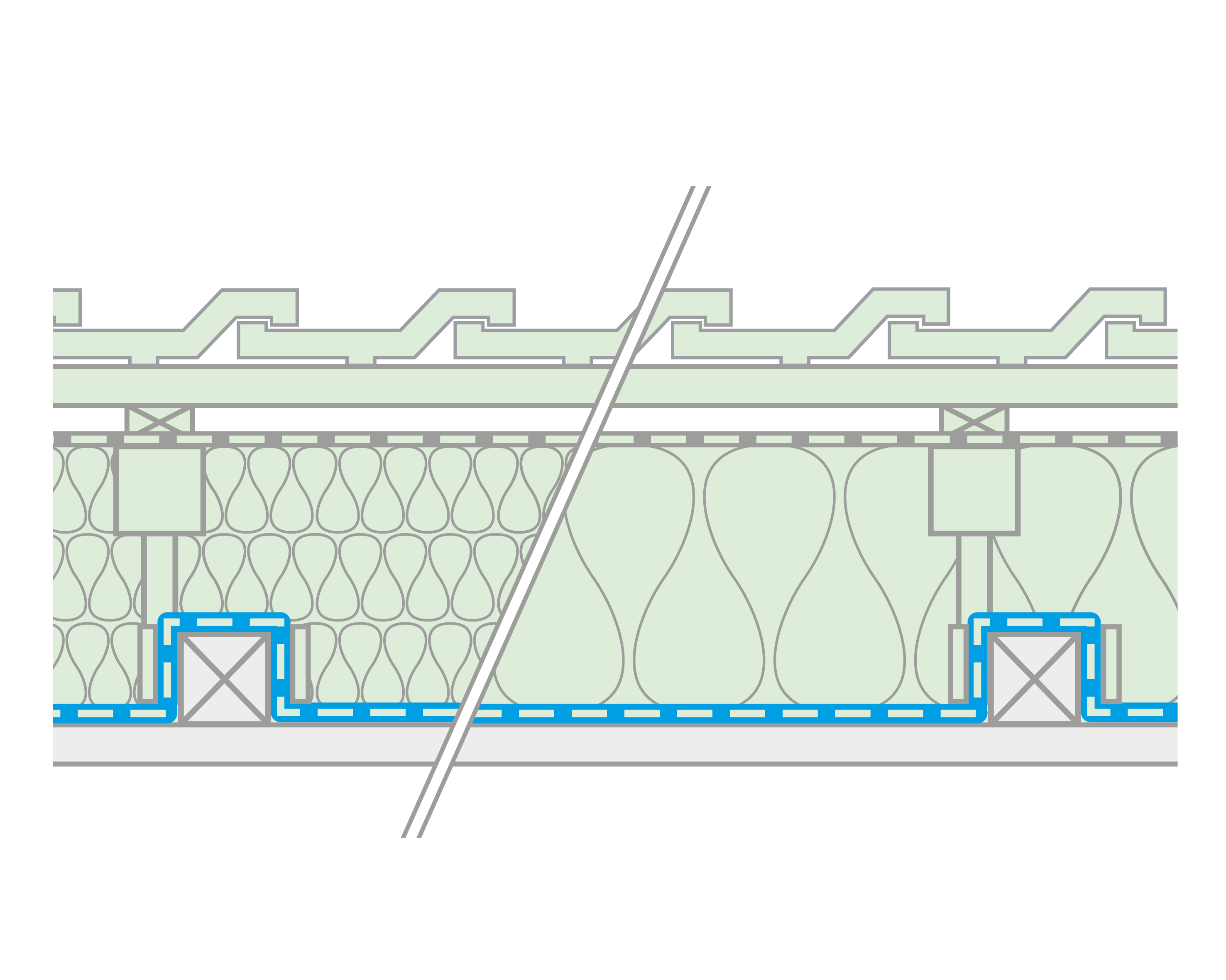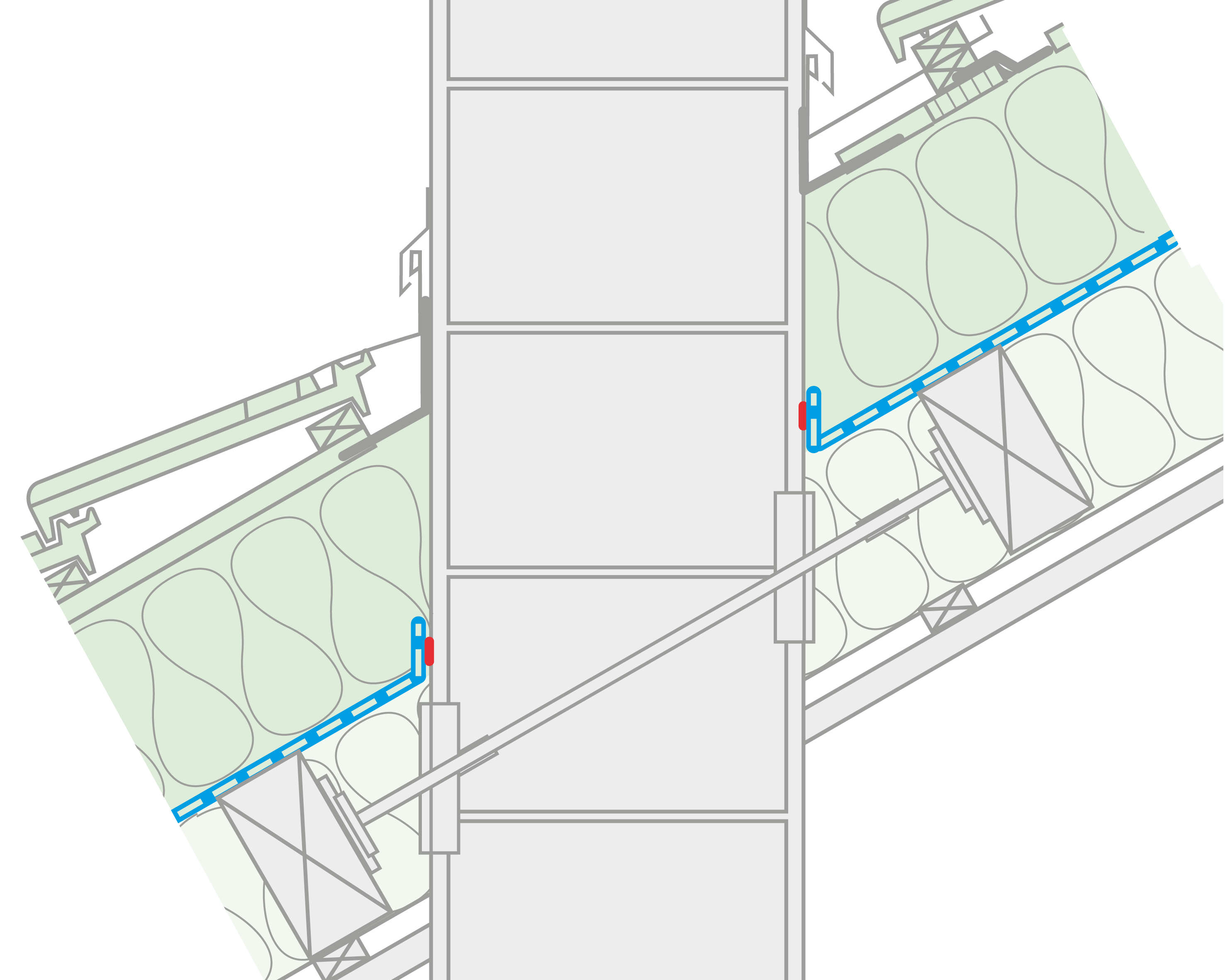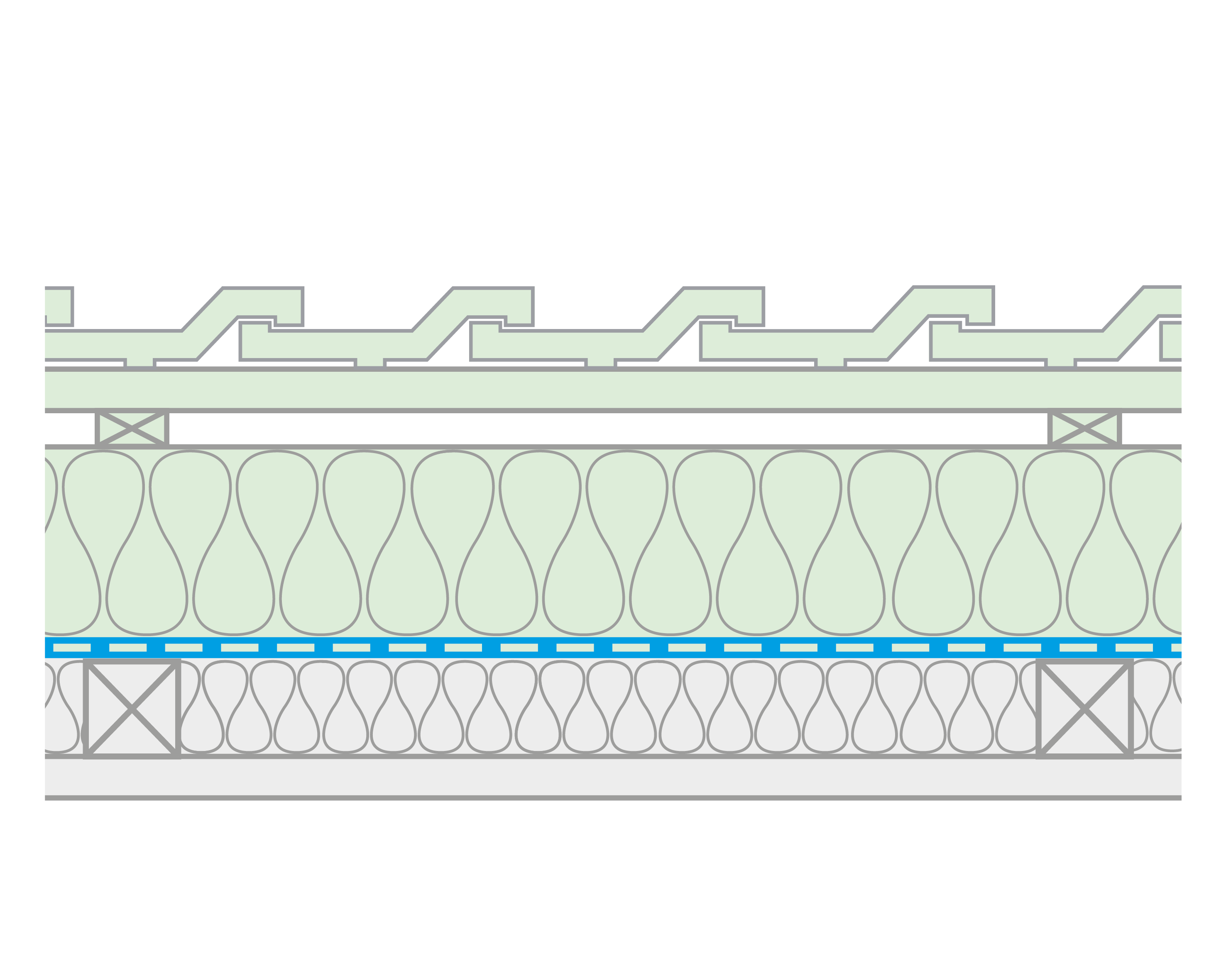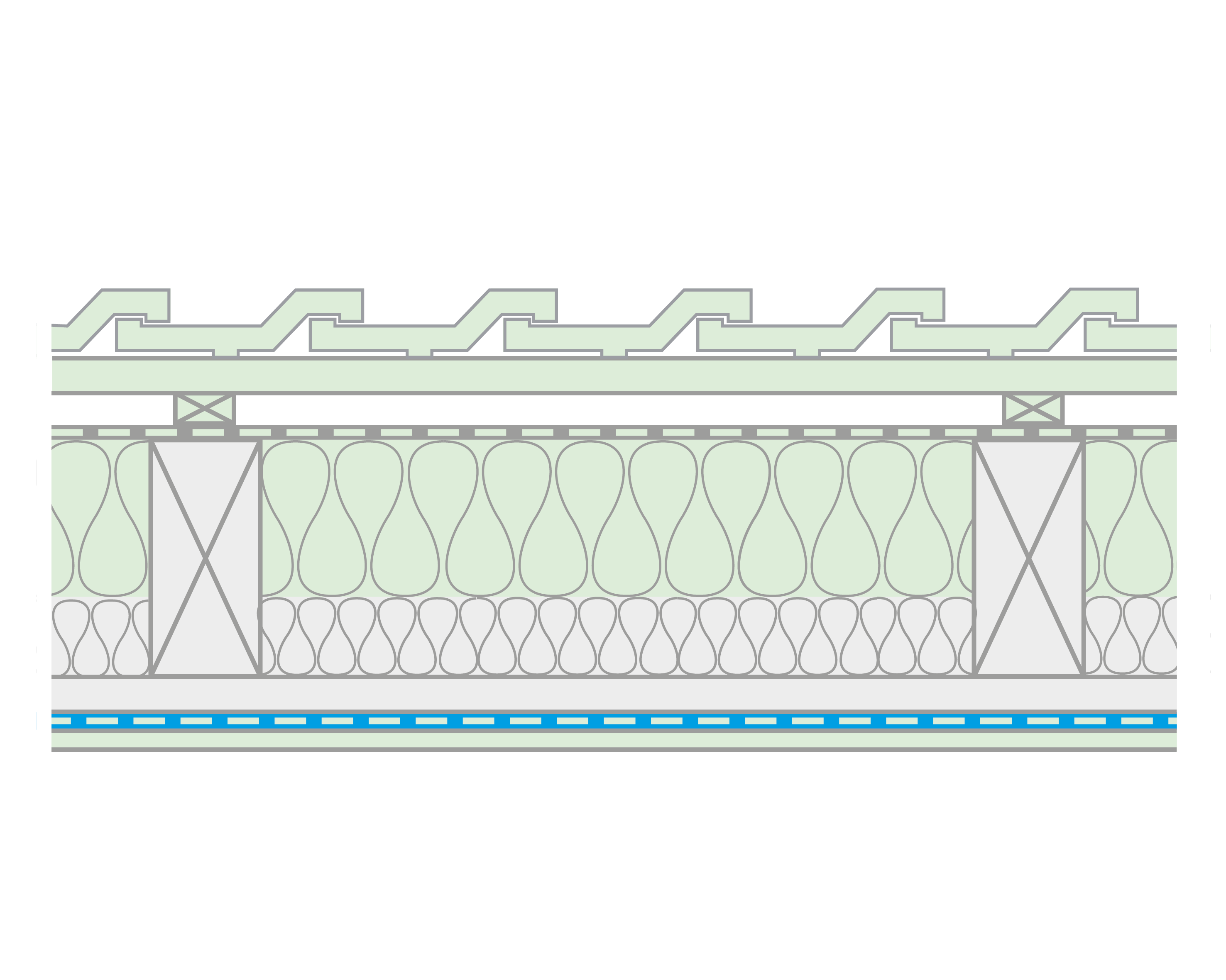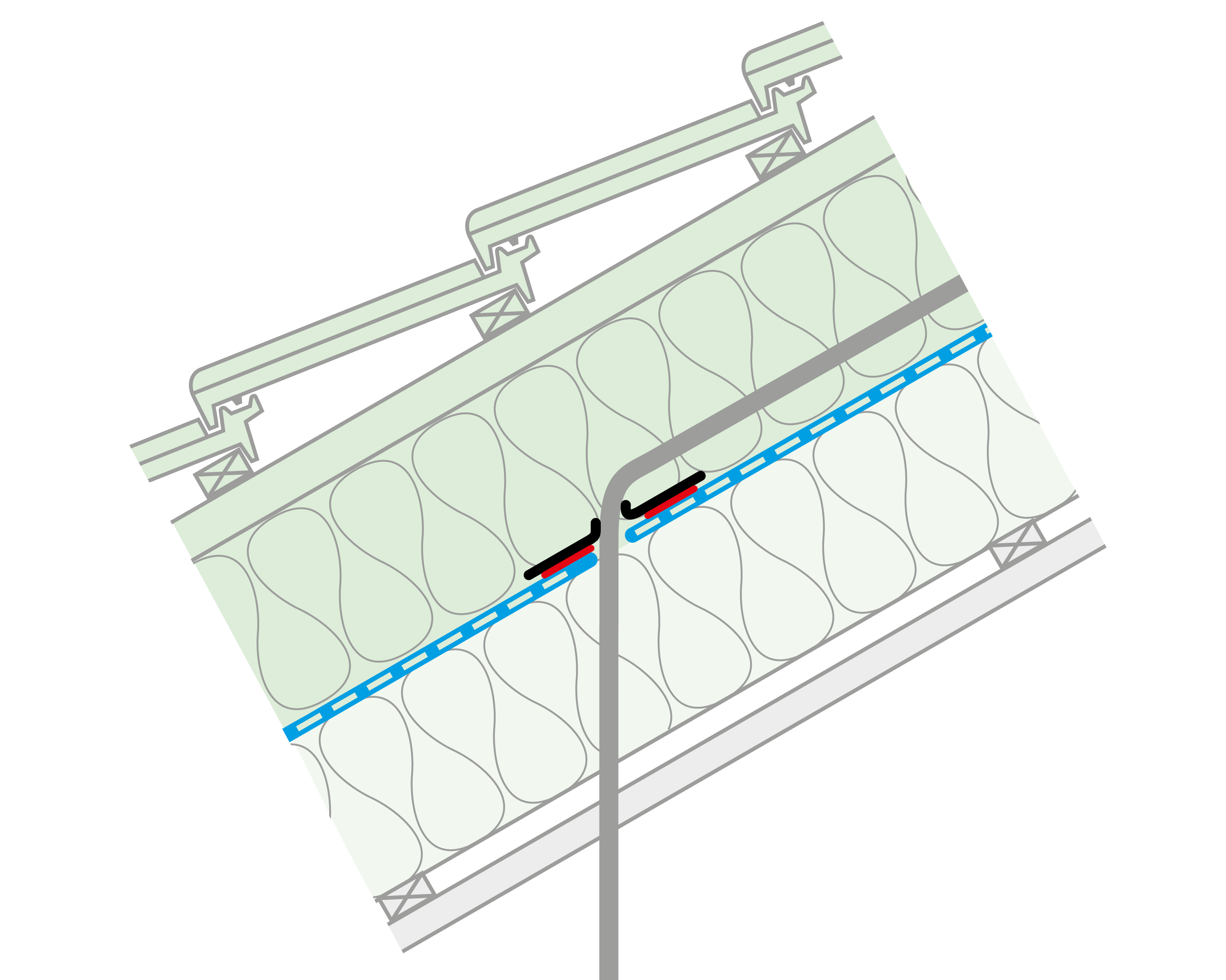 - Luftdichtungs- und Aufdachdampfbremsbahn (blau): INTELLO X oder DA