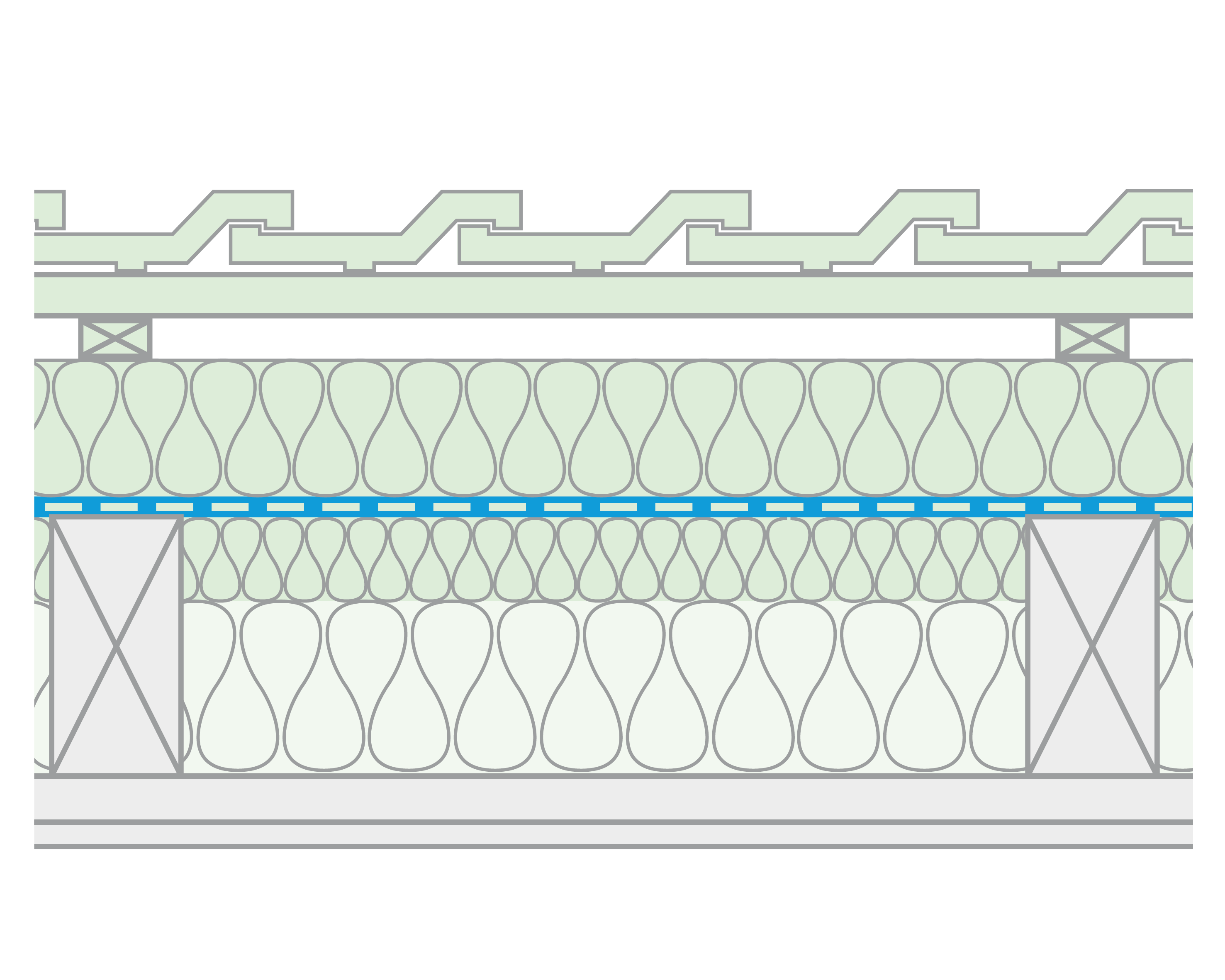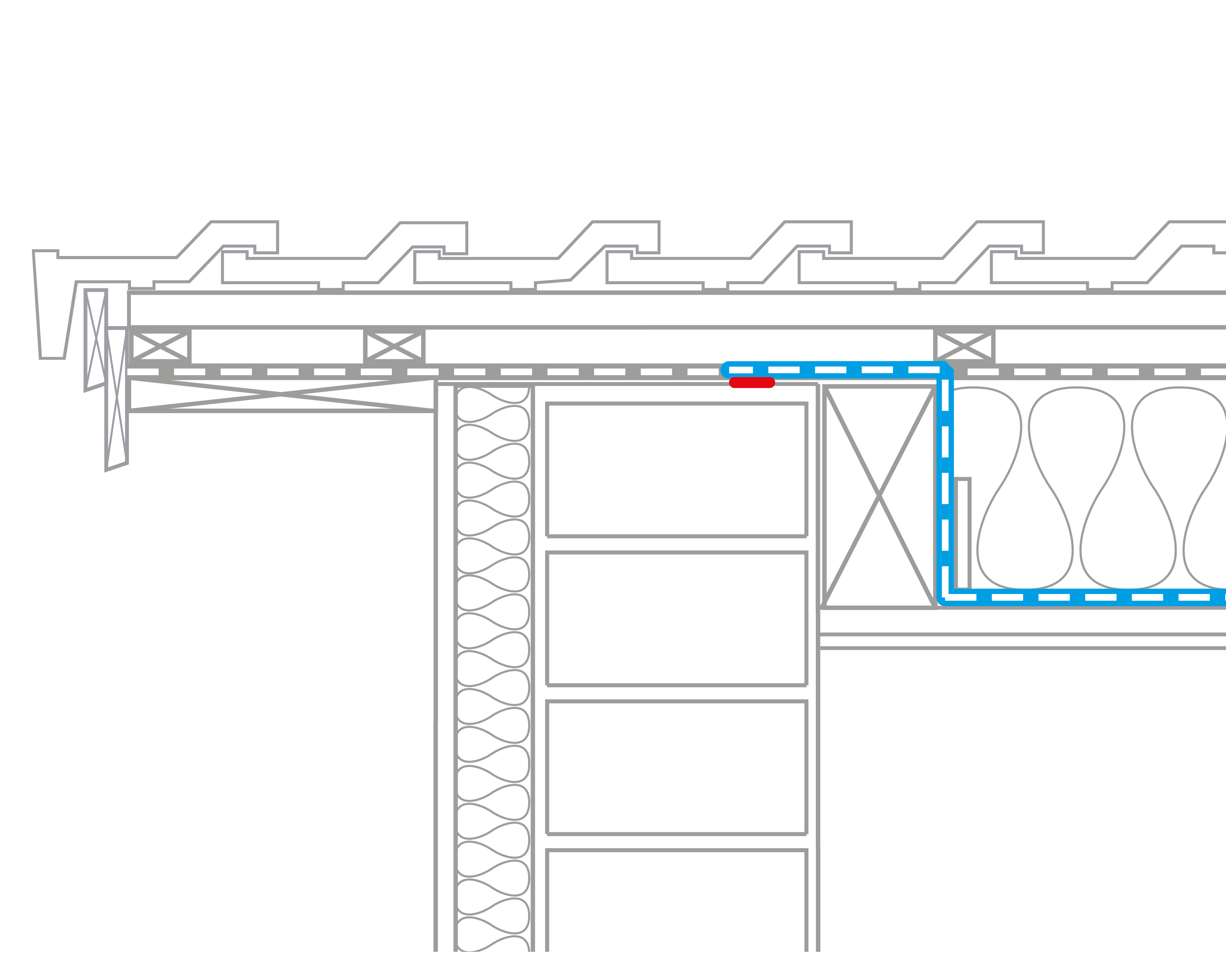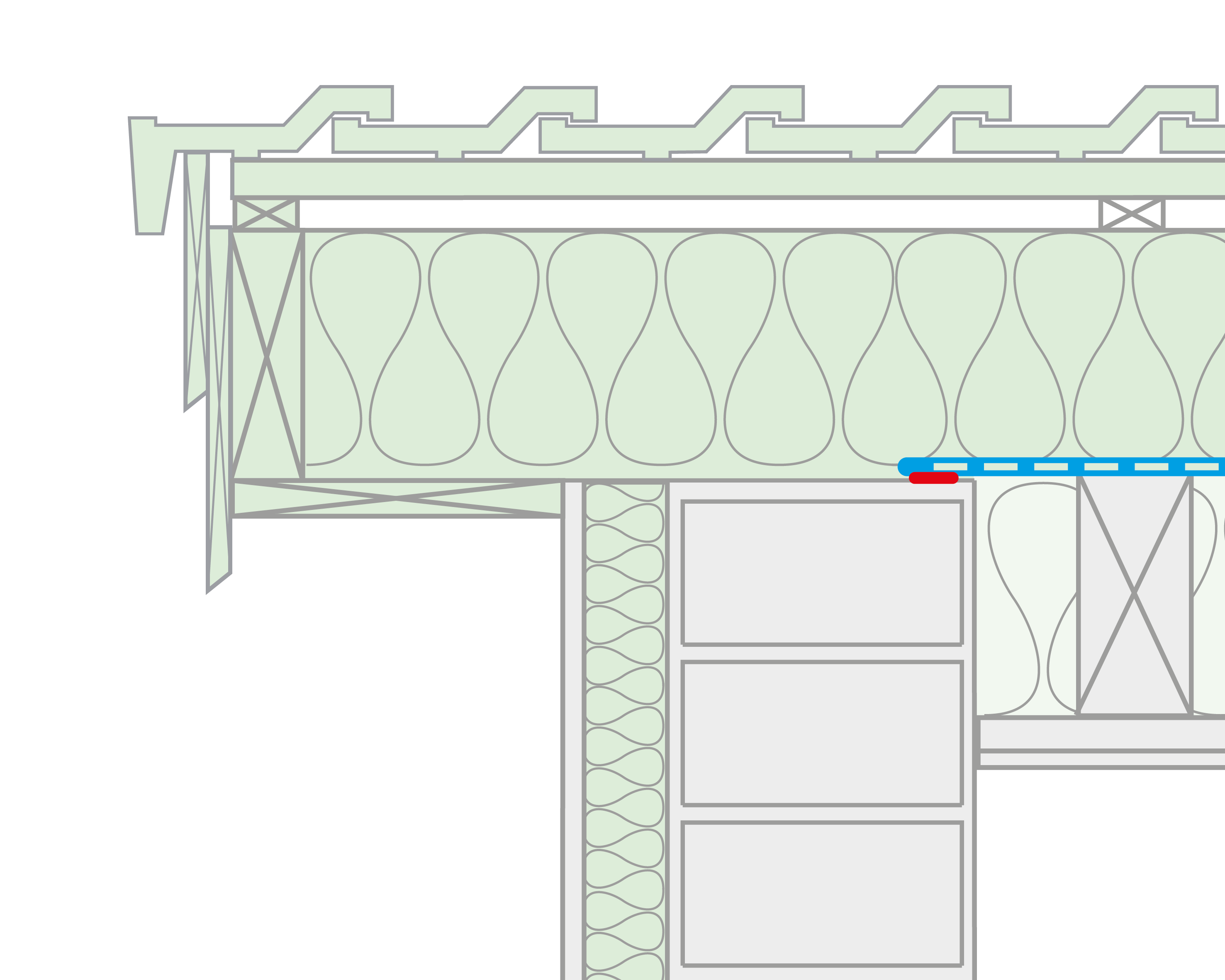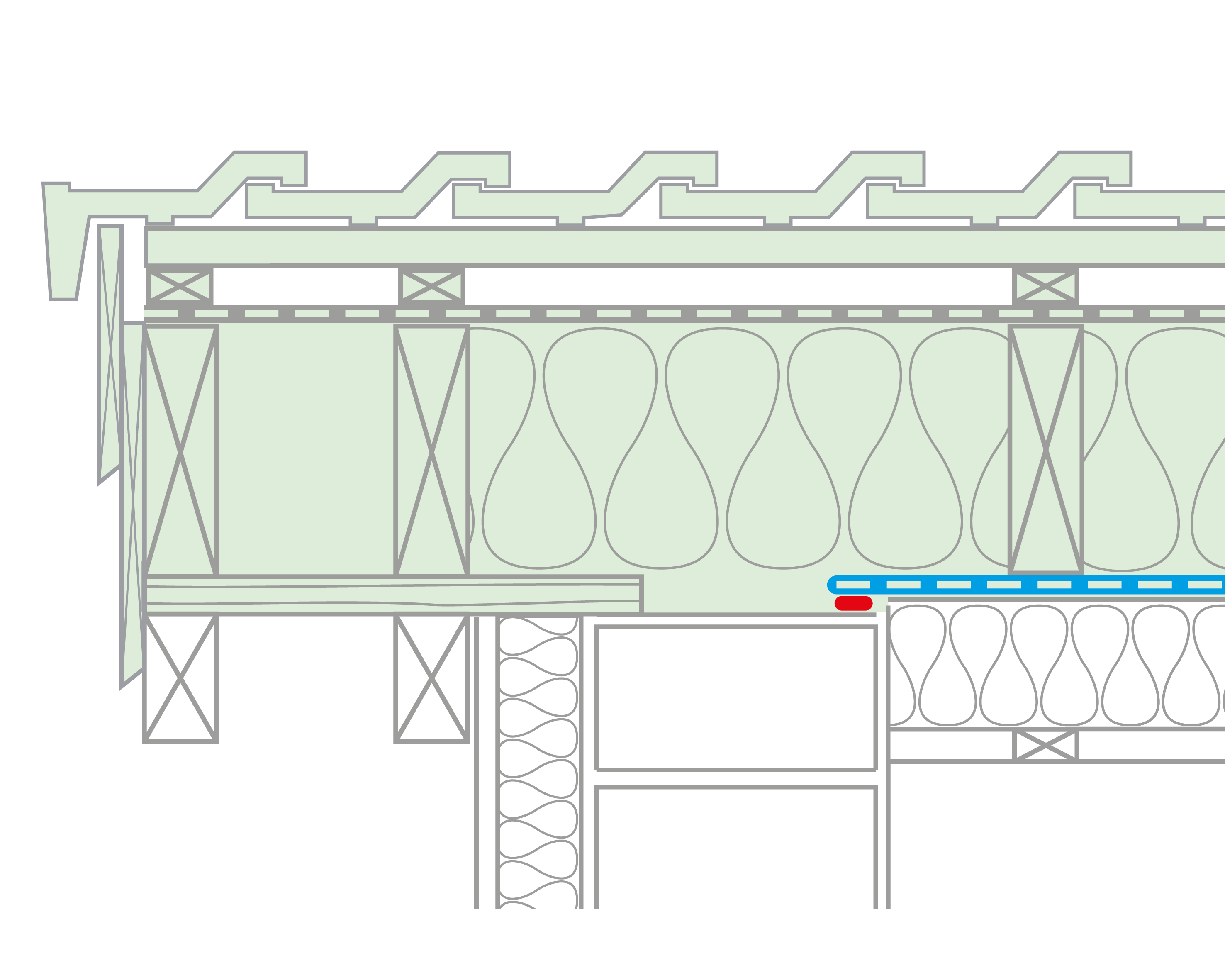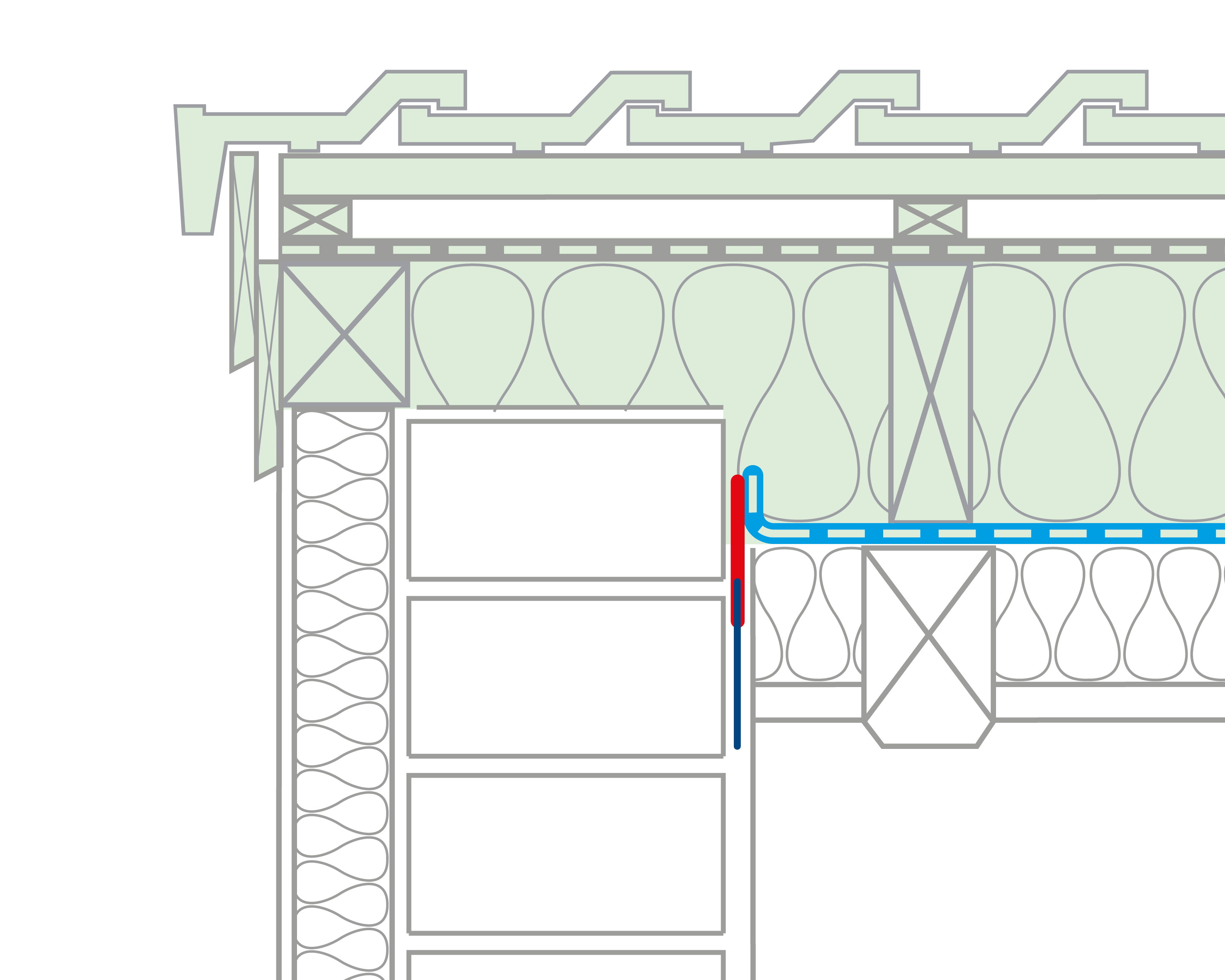- Luftdichtungs- und Aufdachdampfbremsbahn (blau): INTELLO X oder DA
