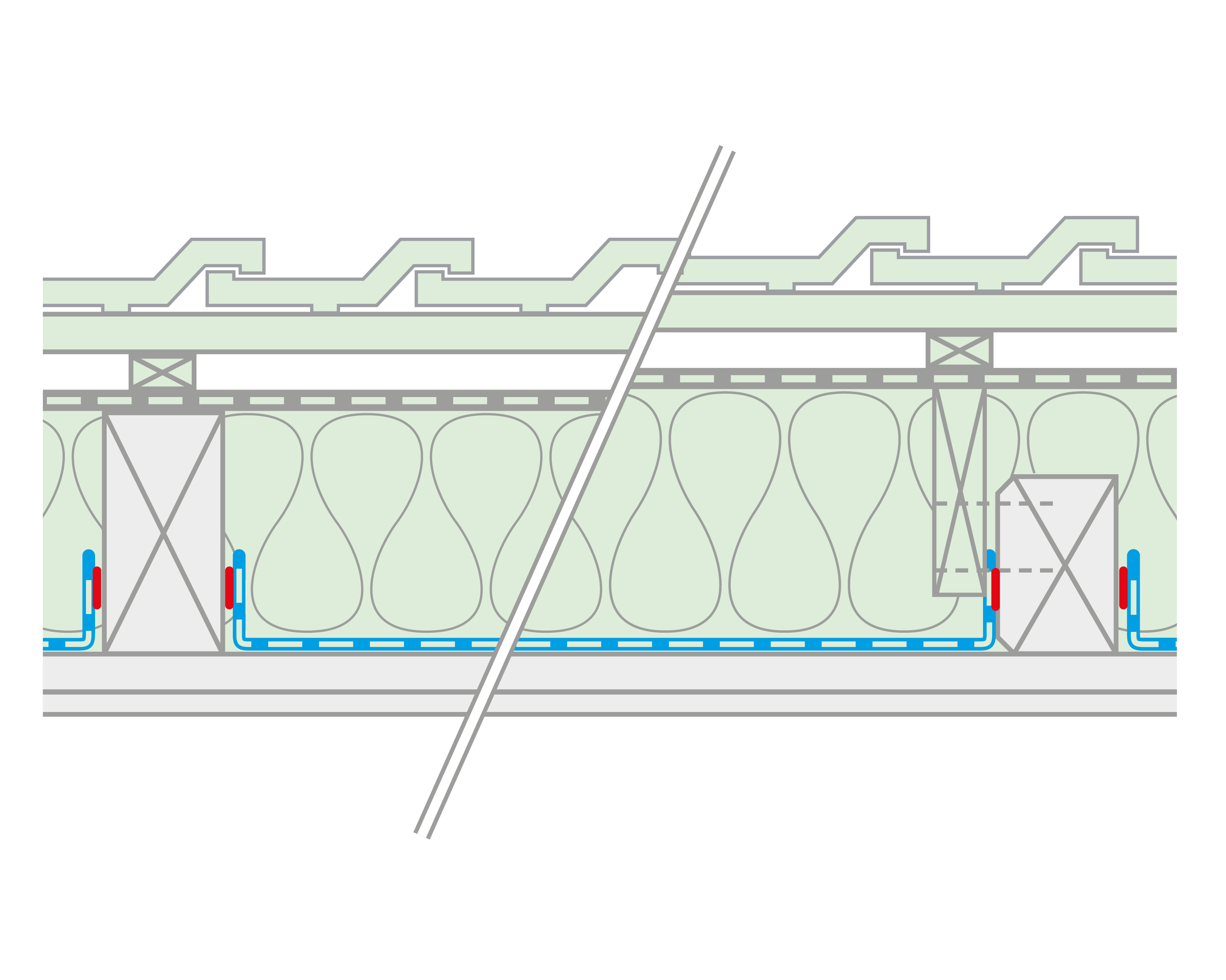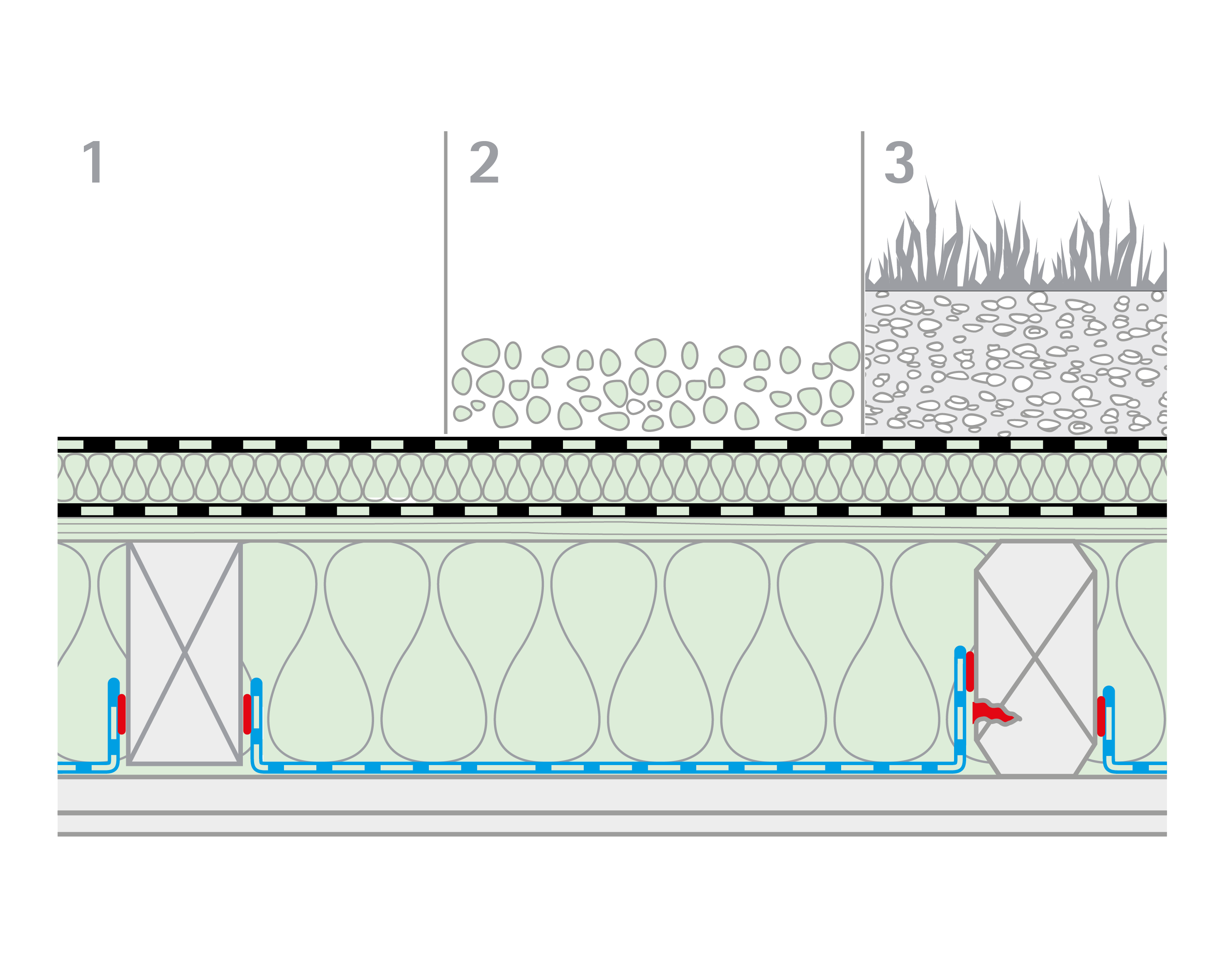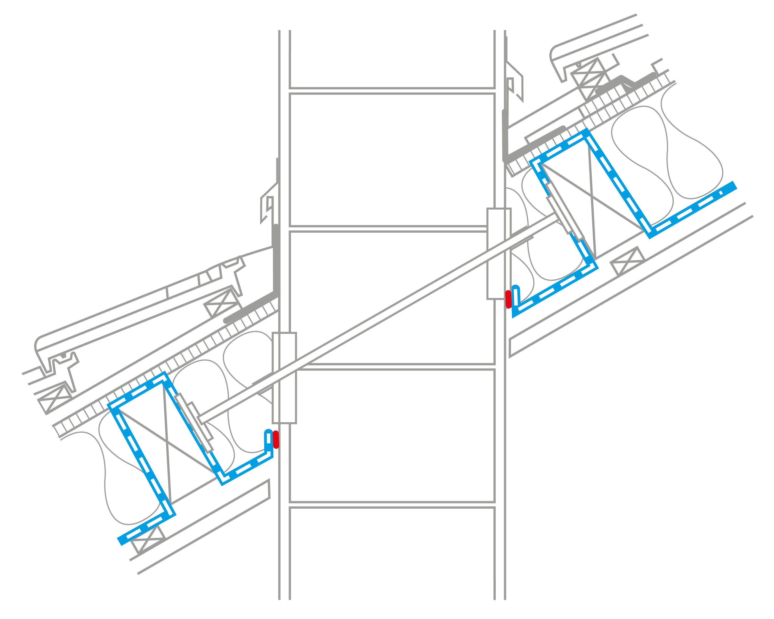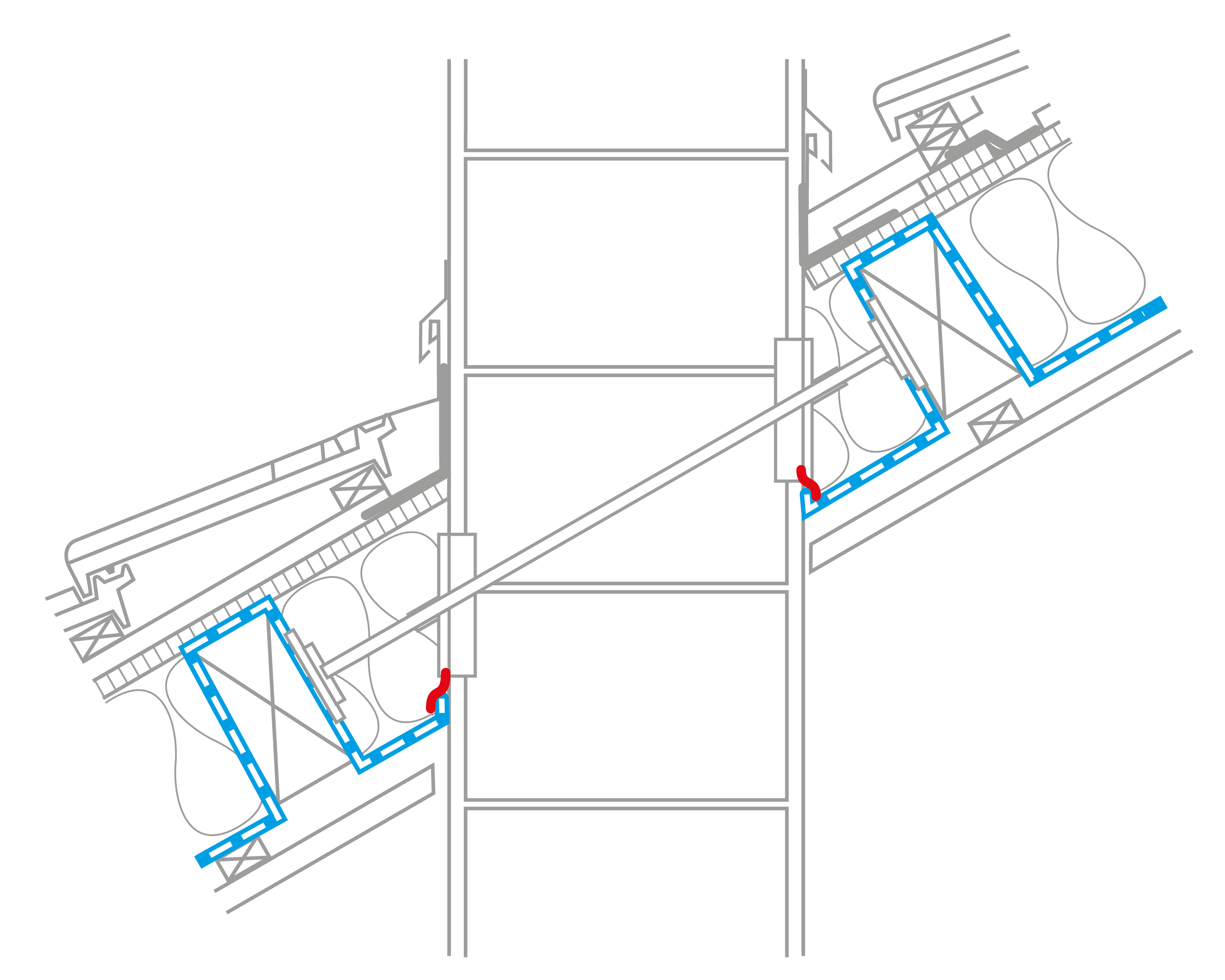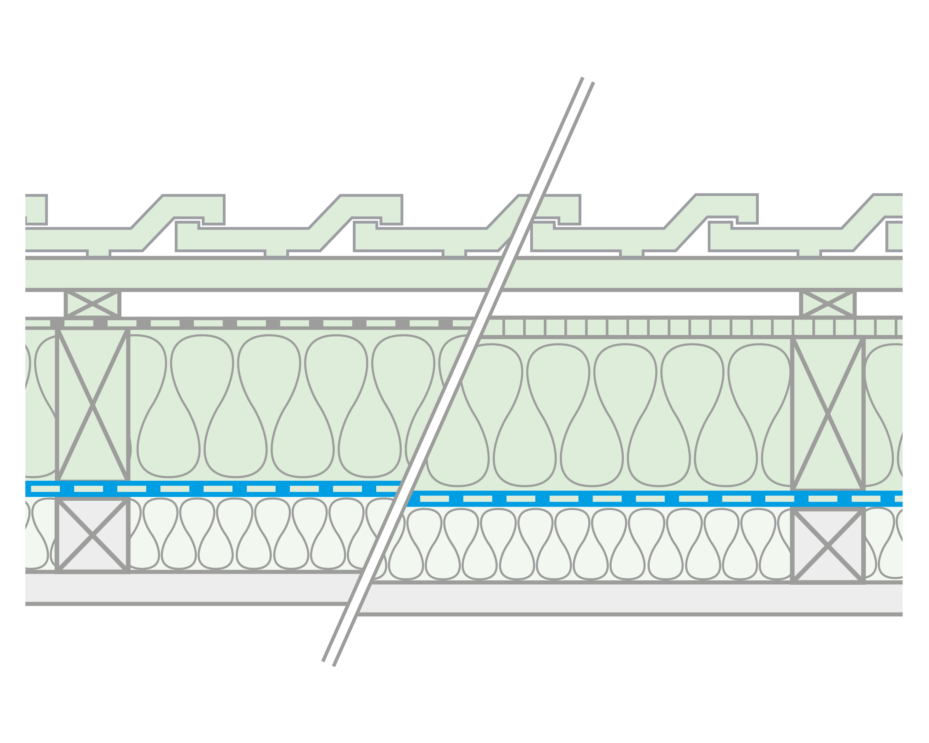 - Luftdichtungs- und Aufdachdampfbremsbahn (blau): INTELLO X oder DA