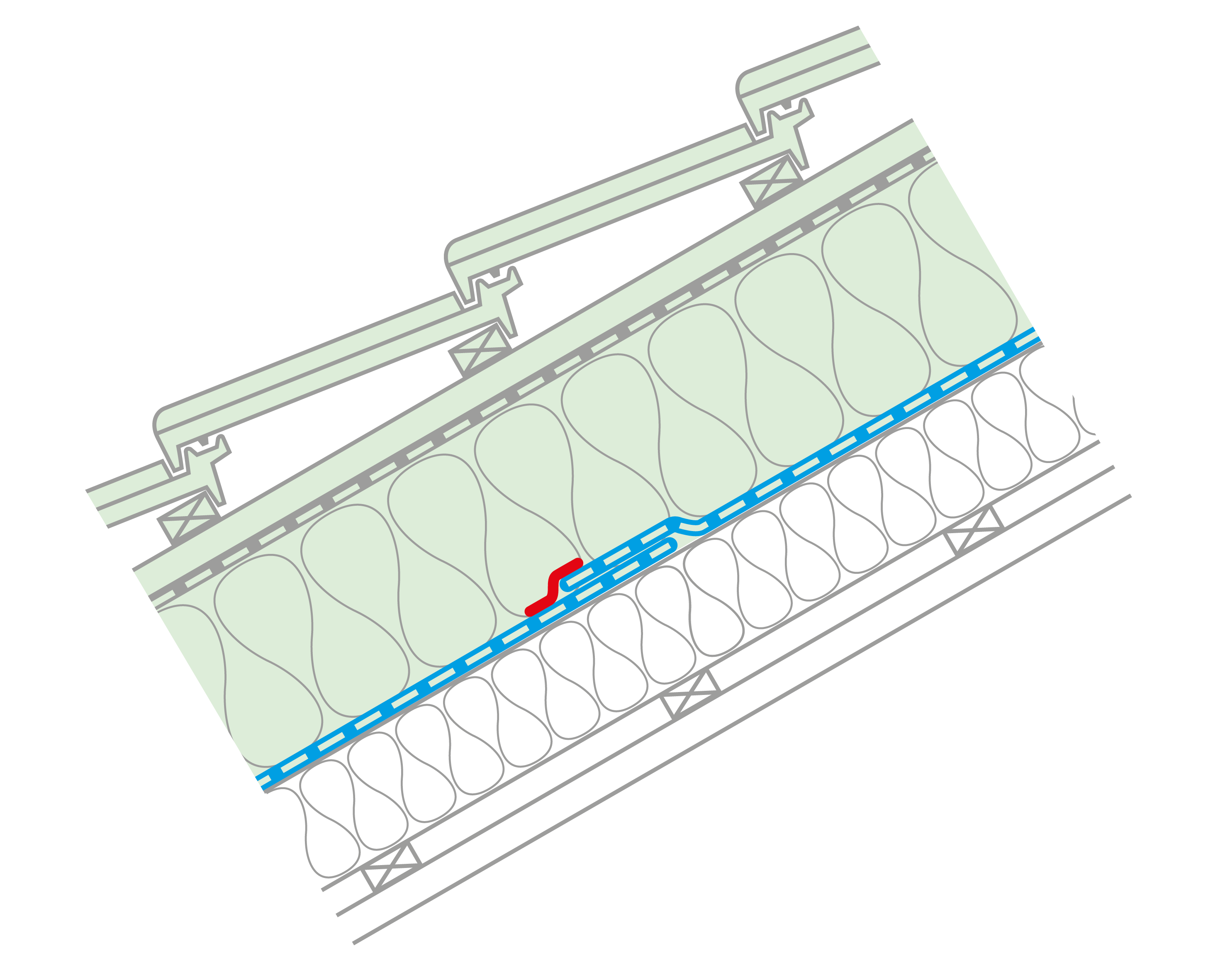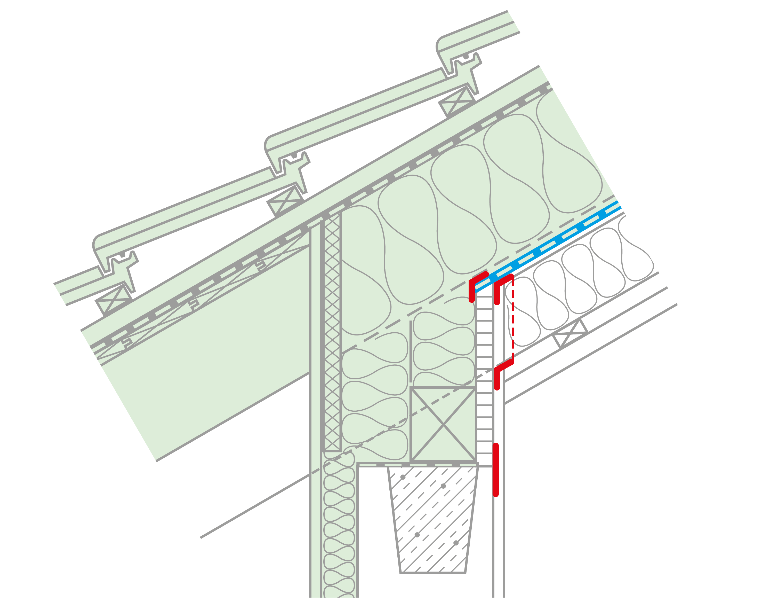- Anschluss Aufdachdampfbremse/Holzwerkstoffplatte: