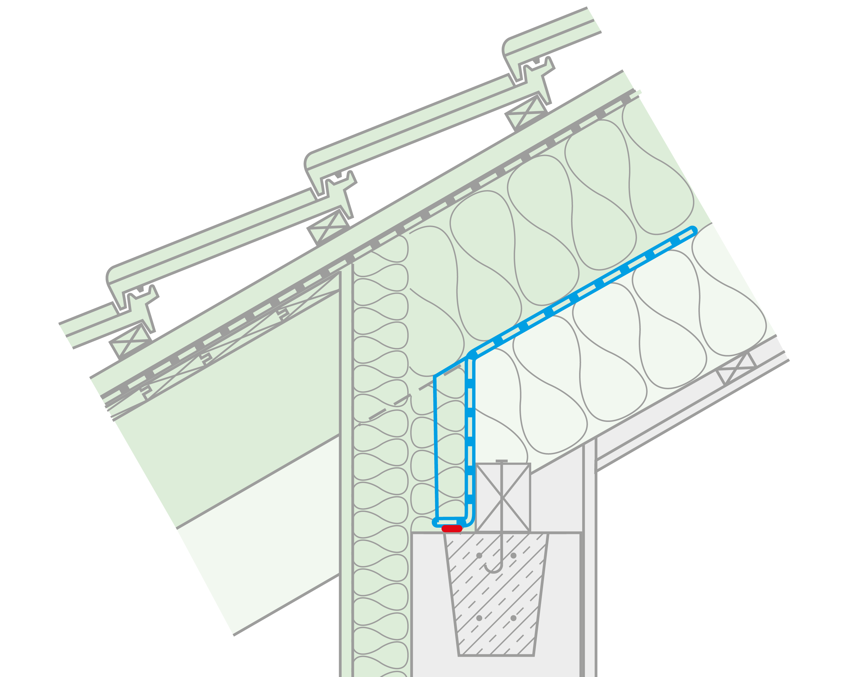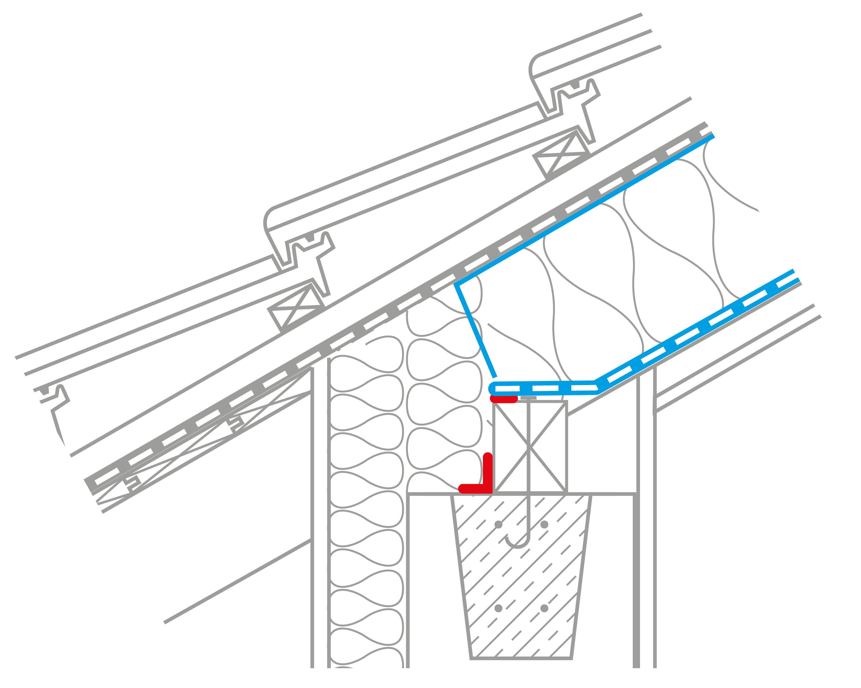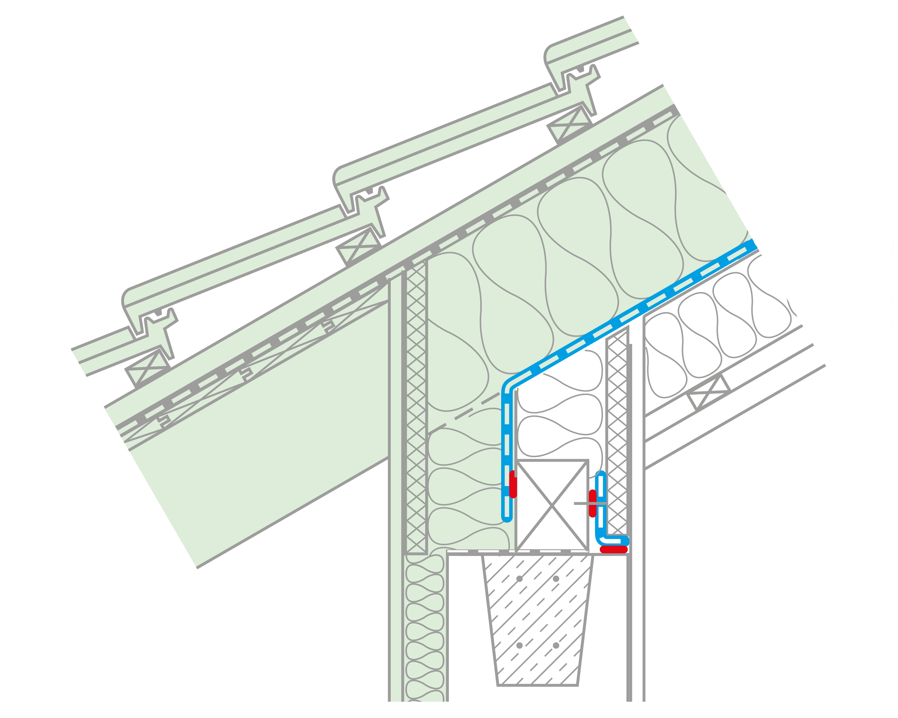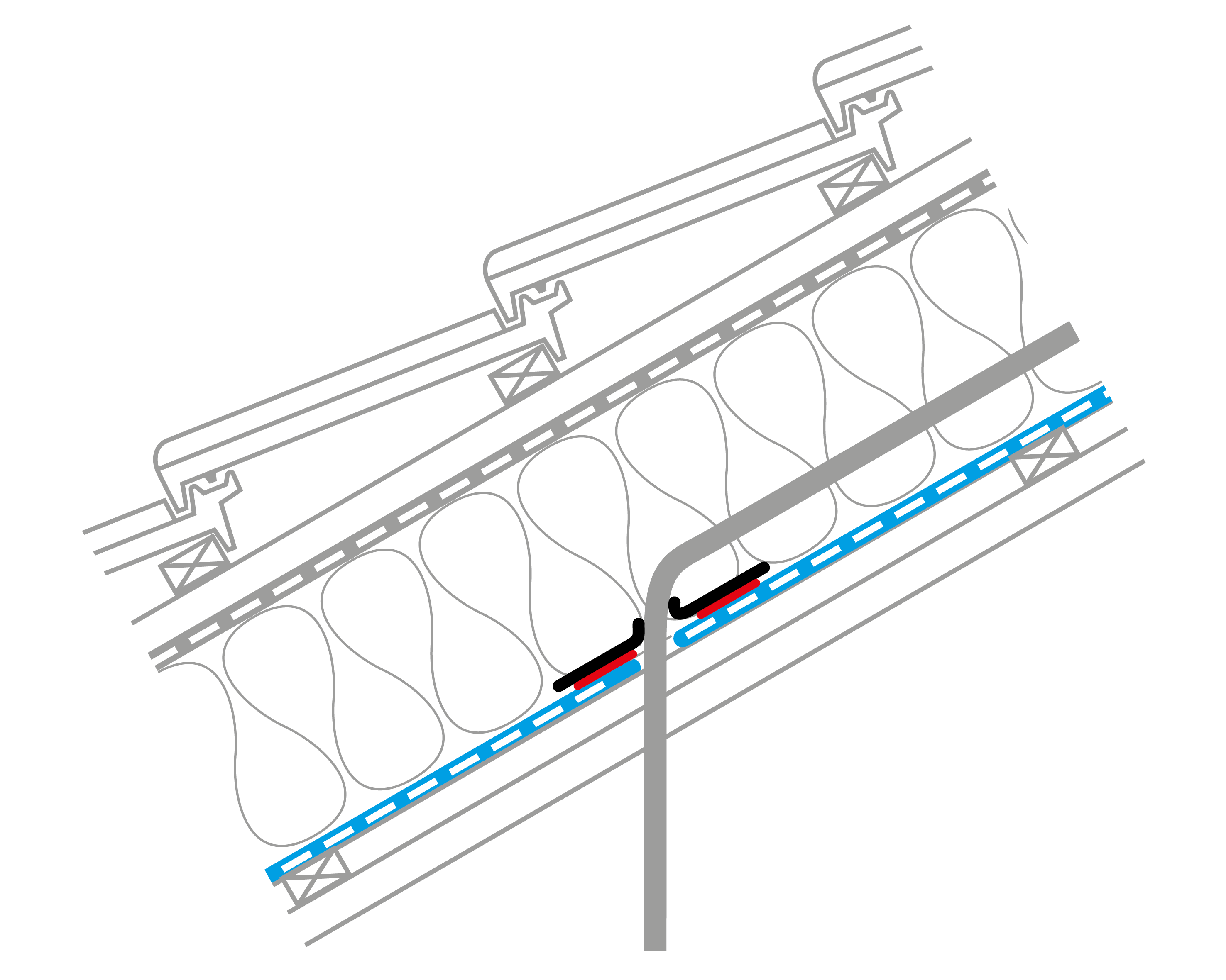 Anschluss Dampfbremsstreifen/Aufdachdampfbremse (Innenkante der DFF-Leibung):