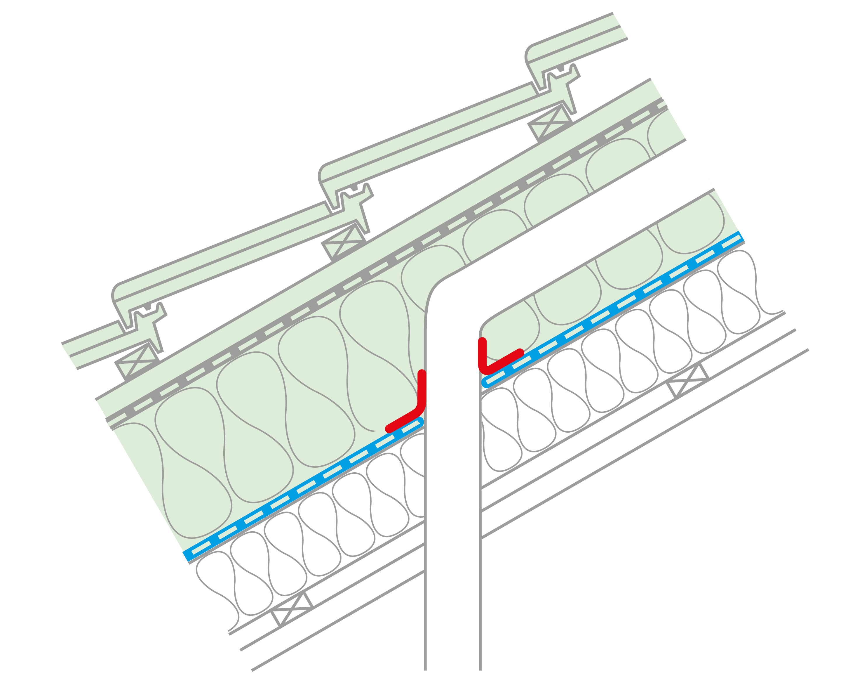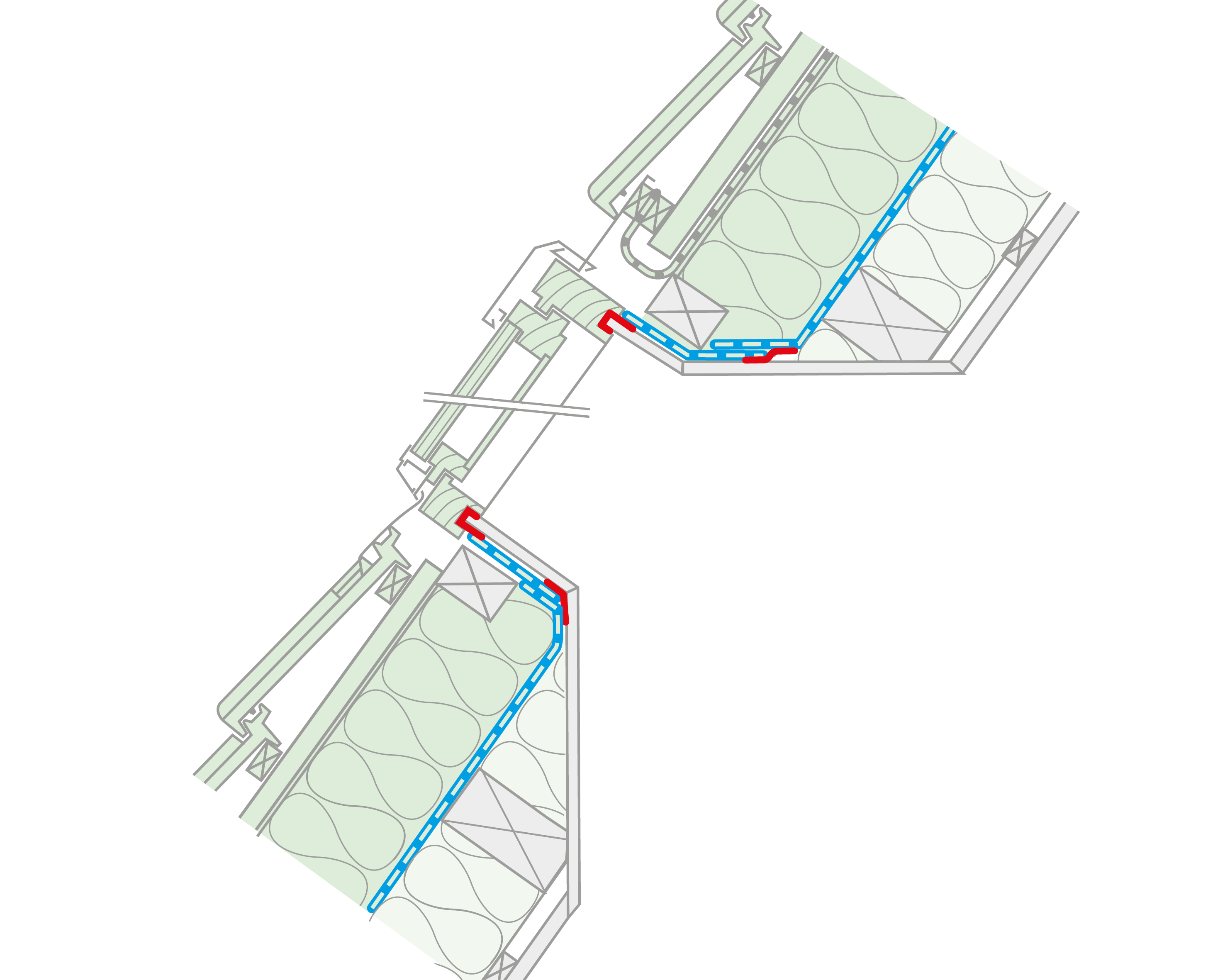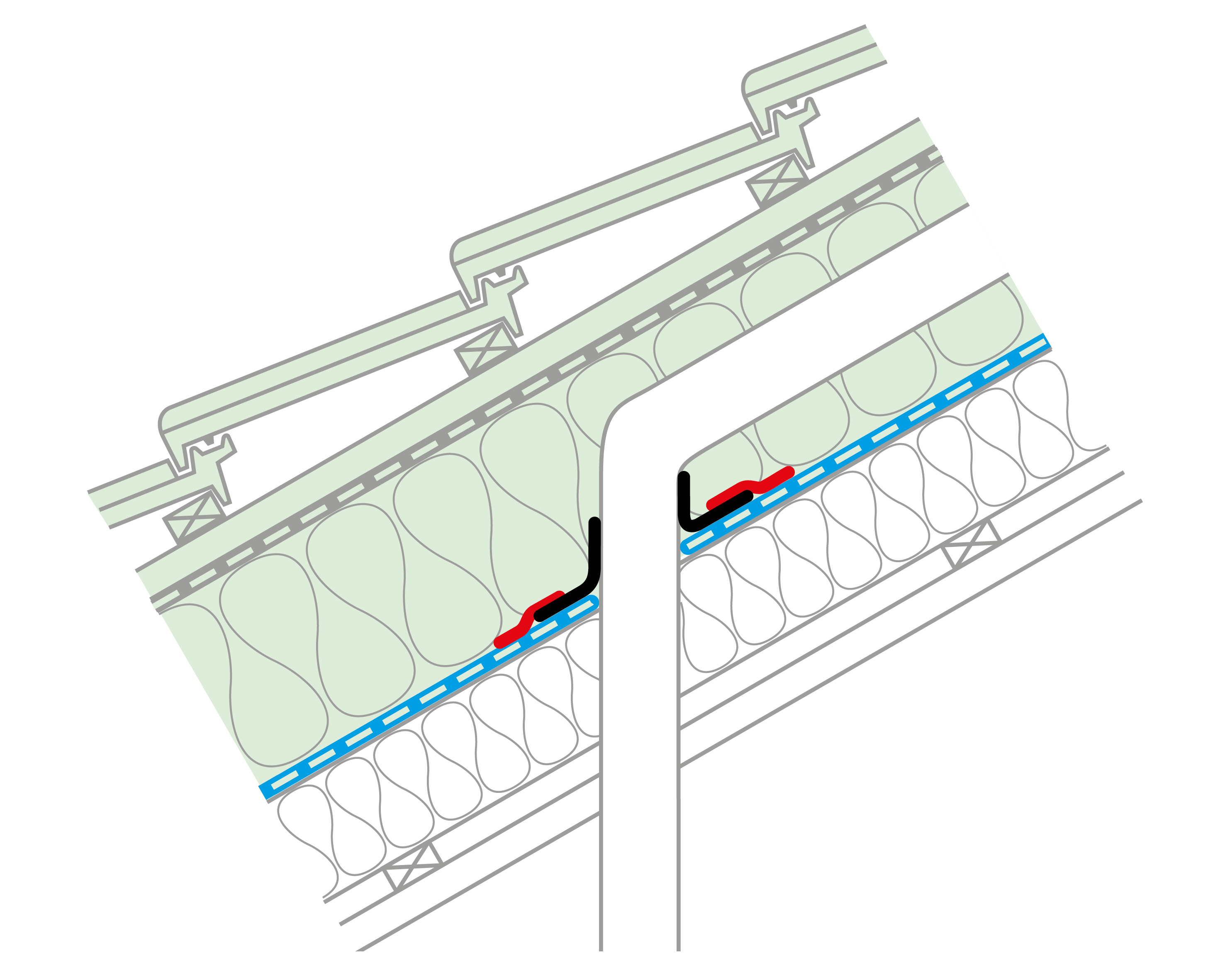 Anschluss Dampfbremsstreifen/Aufdachdampfbremse (Innenkante der DFF-Leibung):