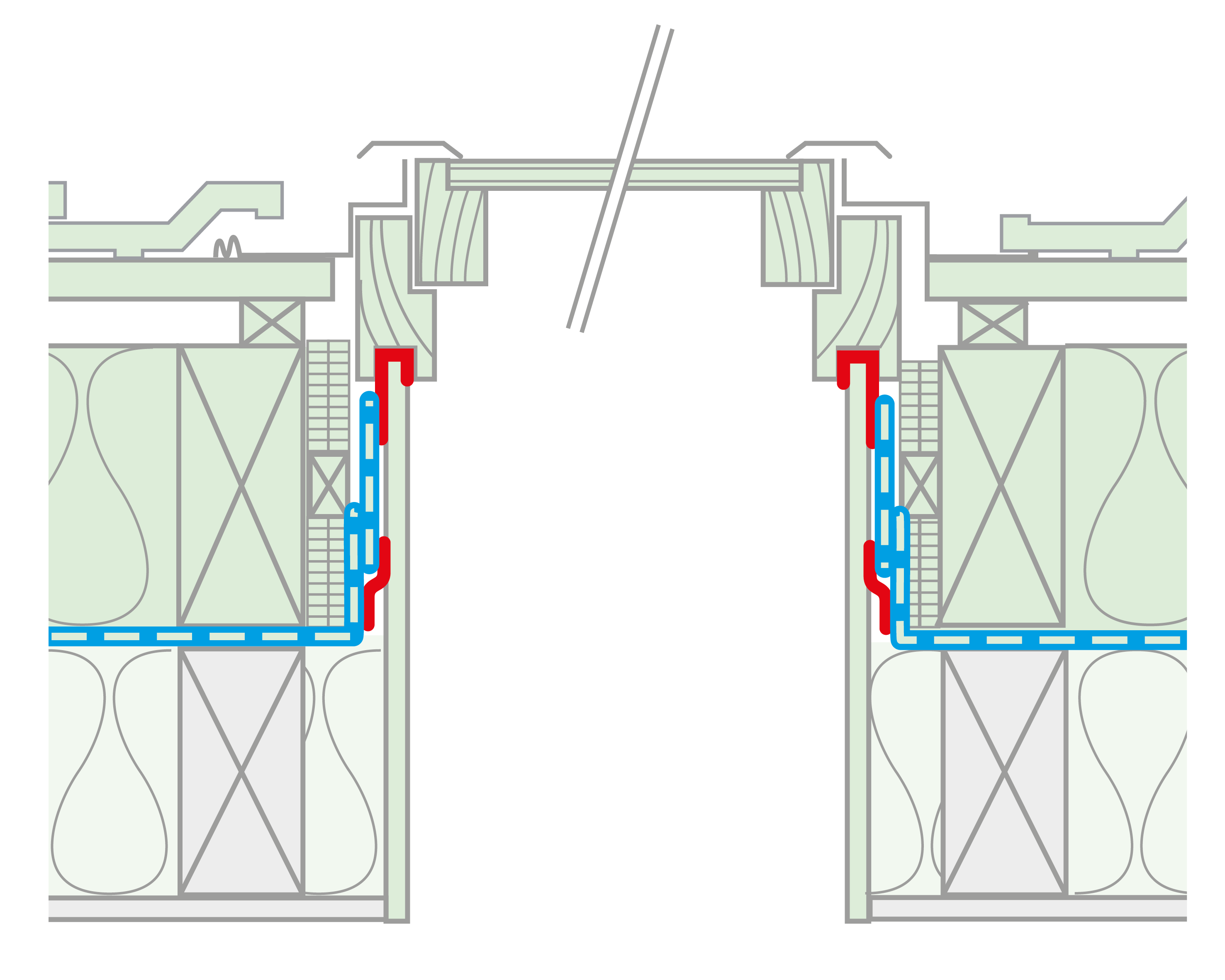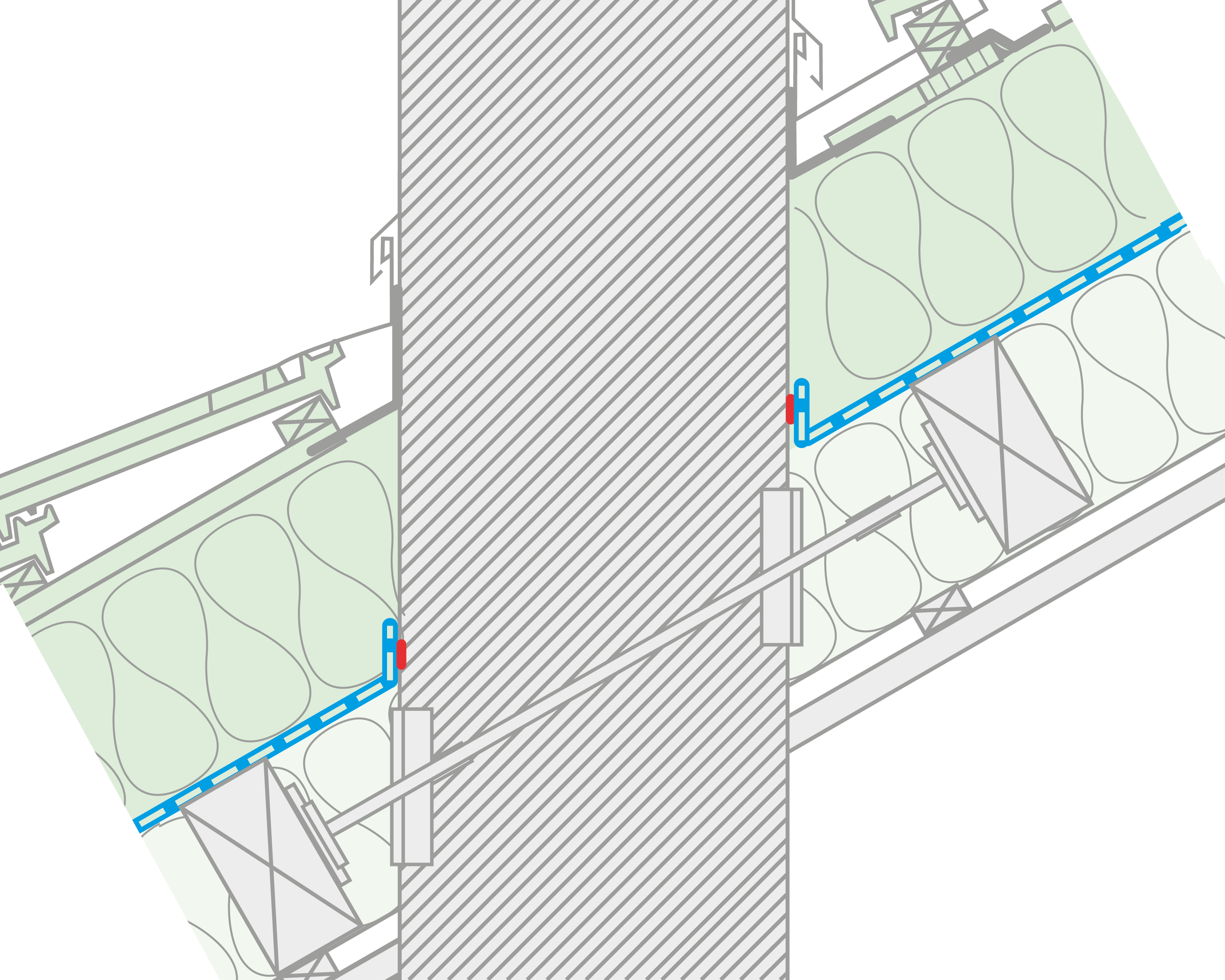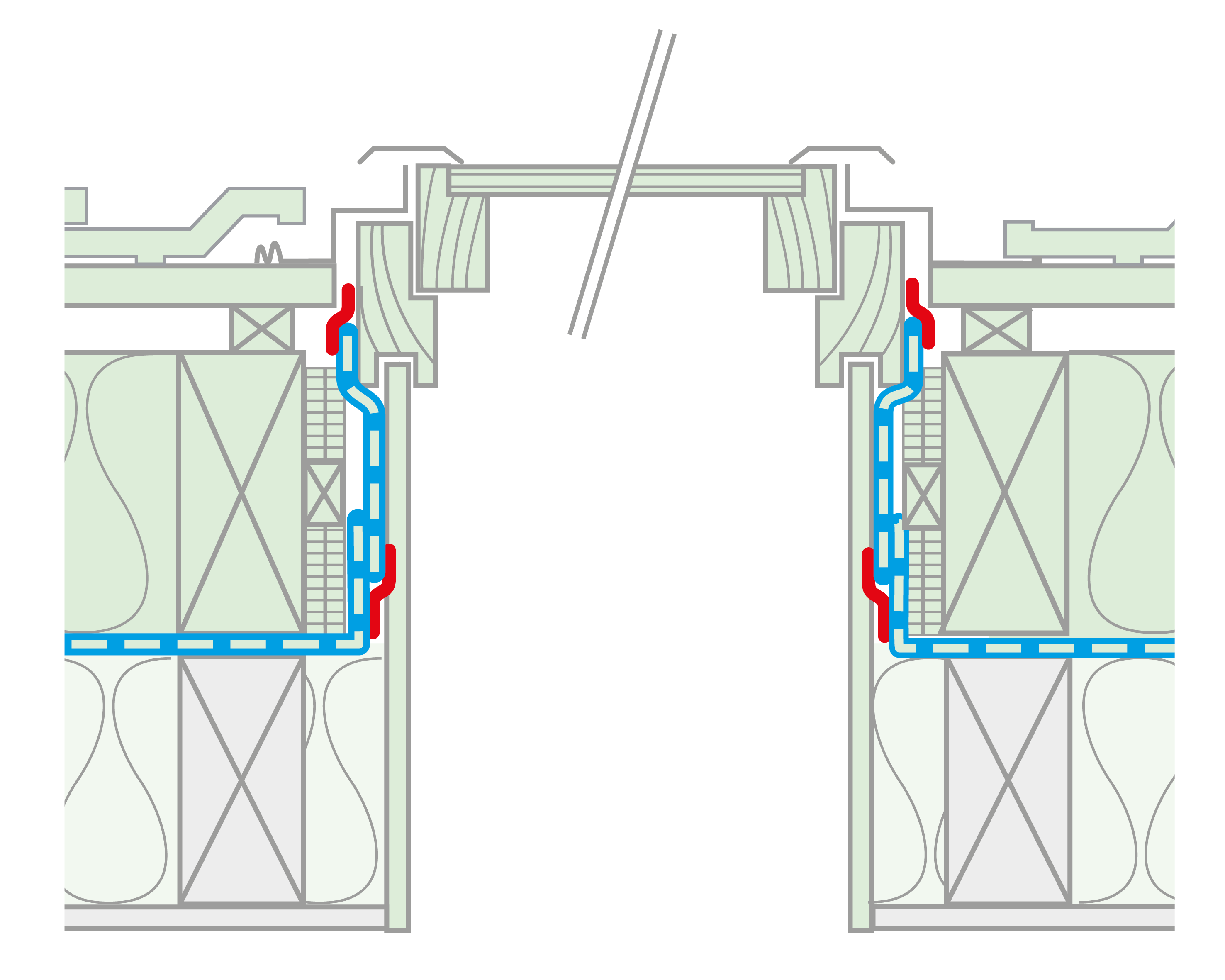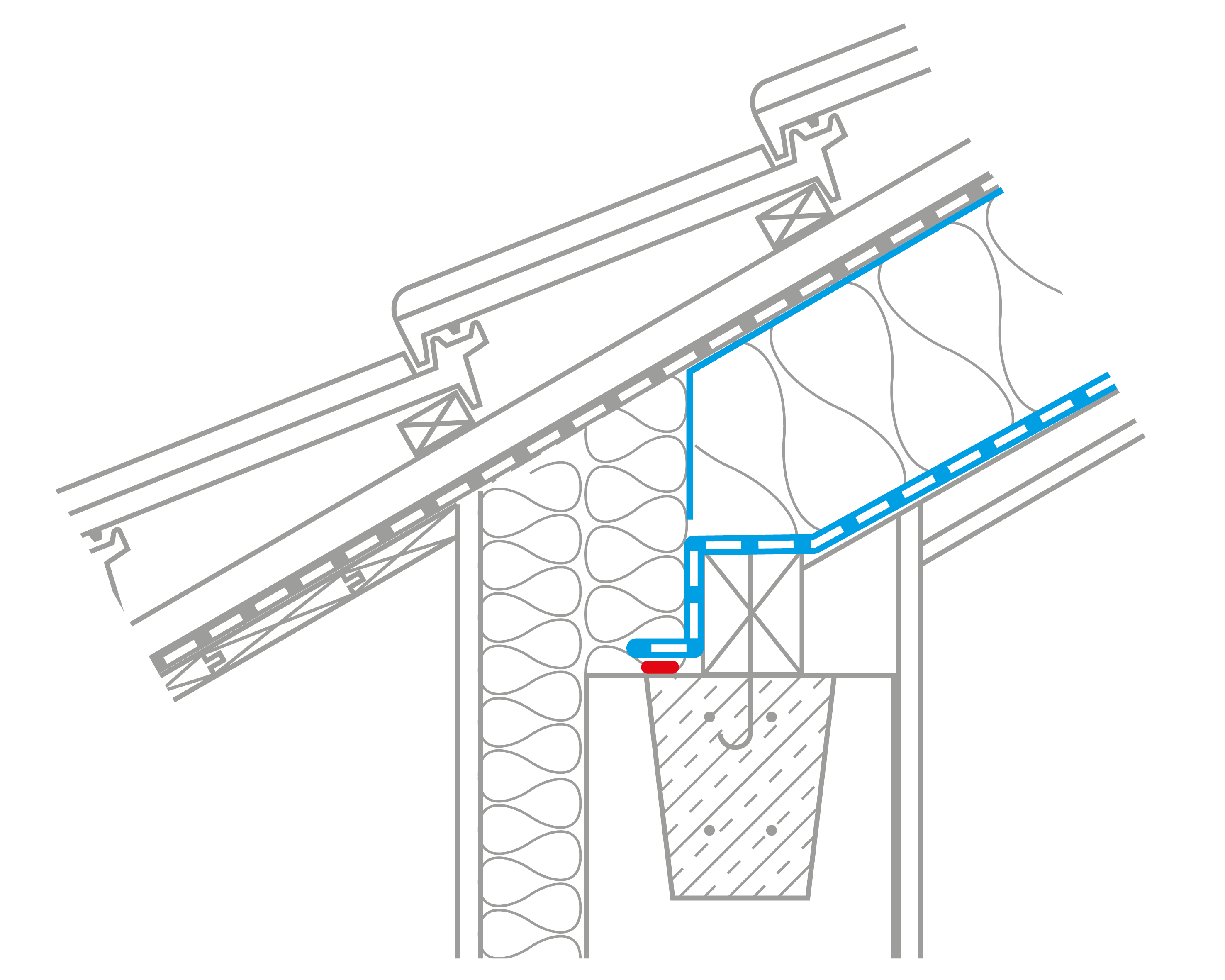 Anschluss Dampfbremsstreifen/Aufdachdampfbremse (Innenkante der DFF-Leibung):