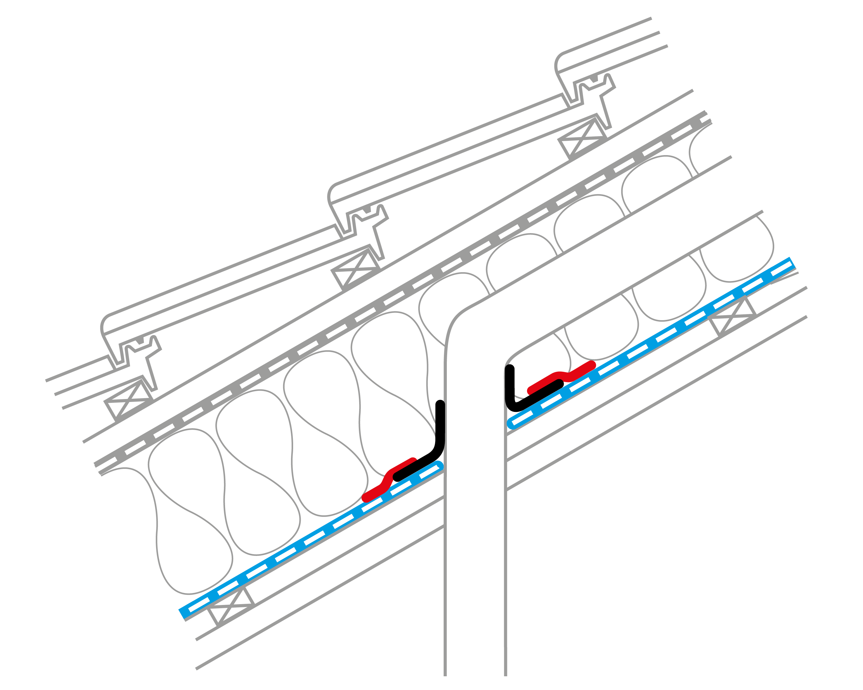 - Unterdeckbahn bis in den ersten Plattenstoß führen.
