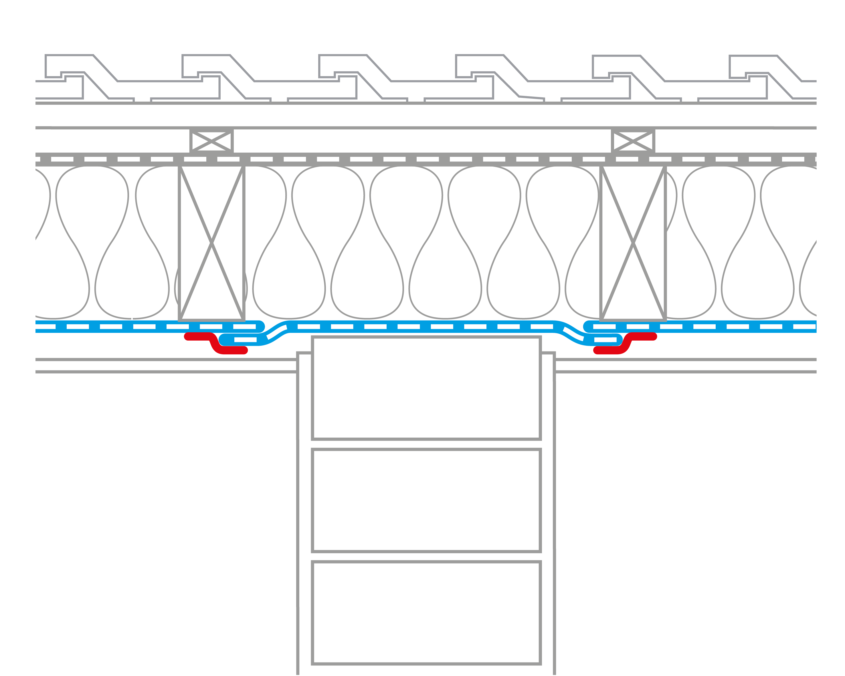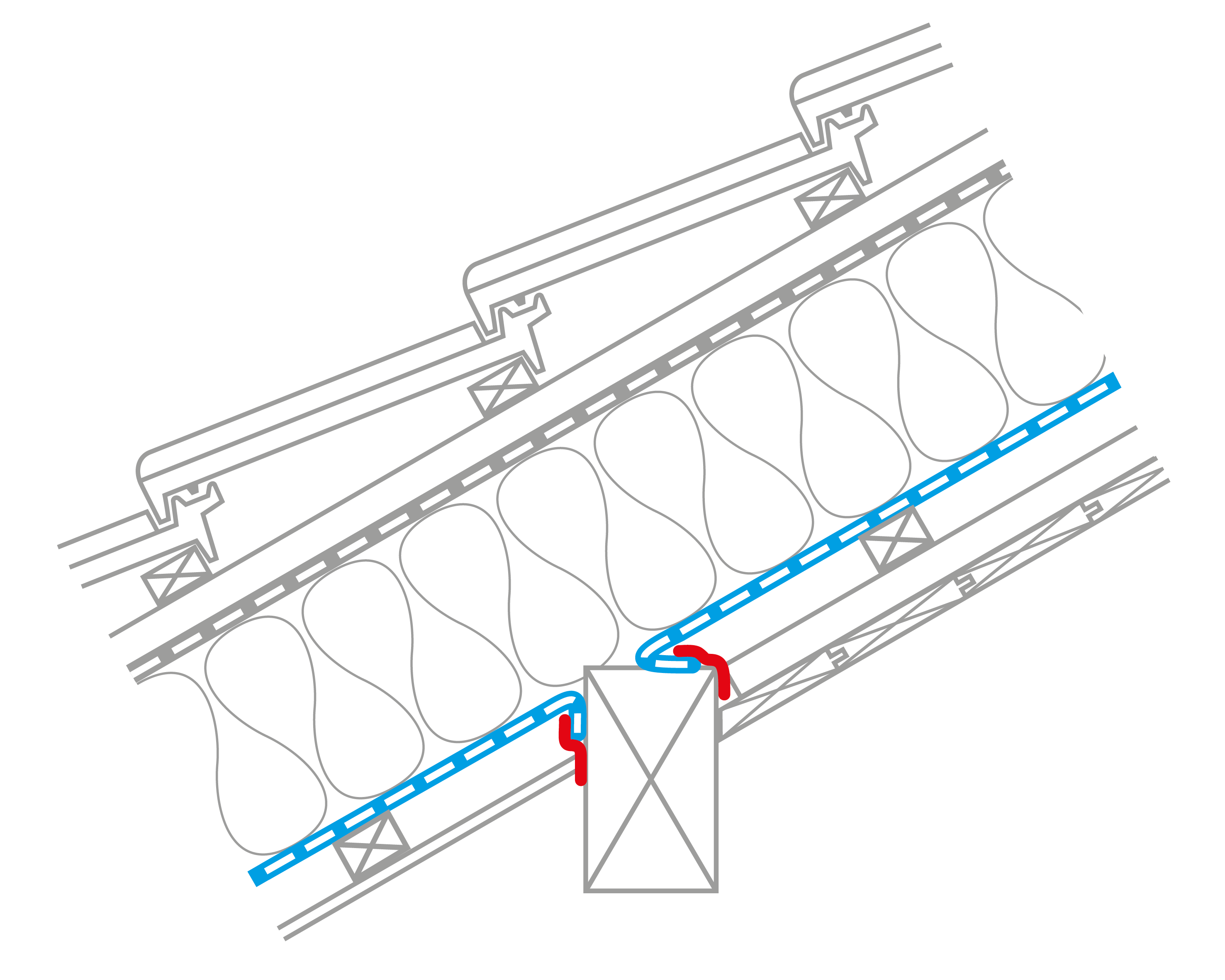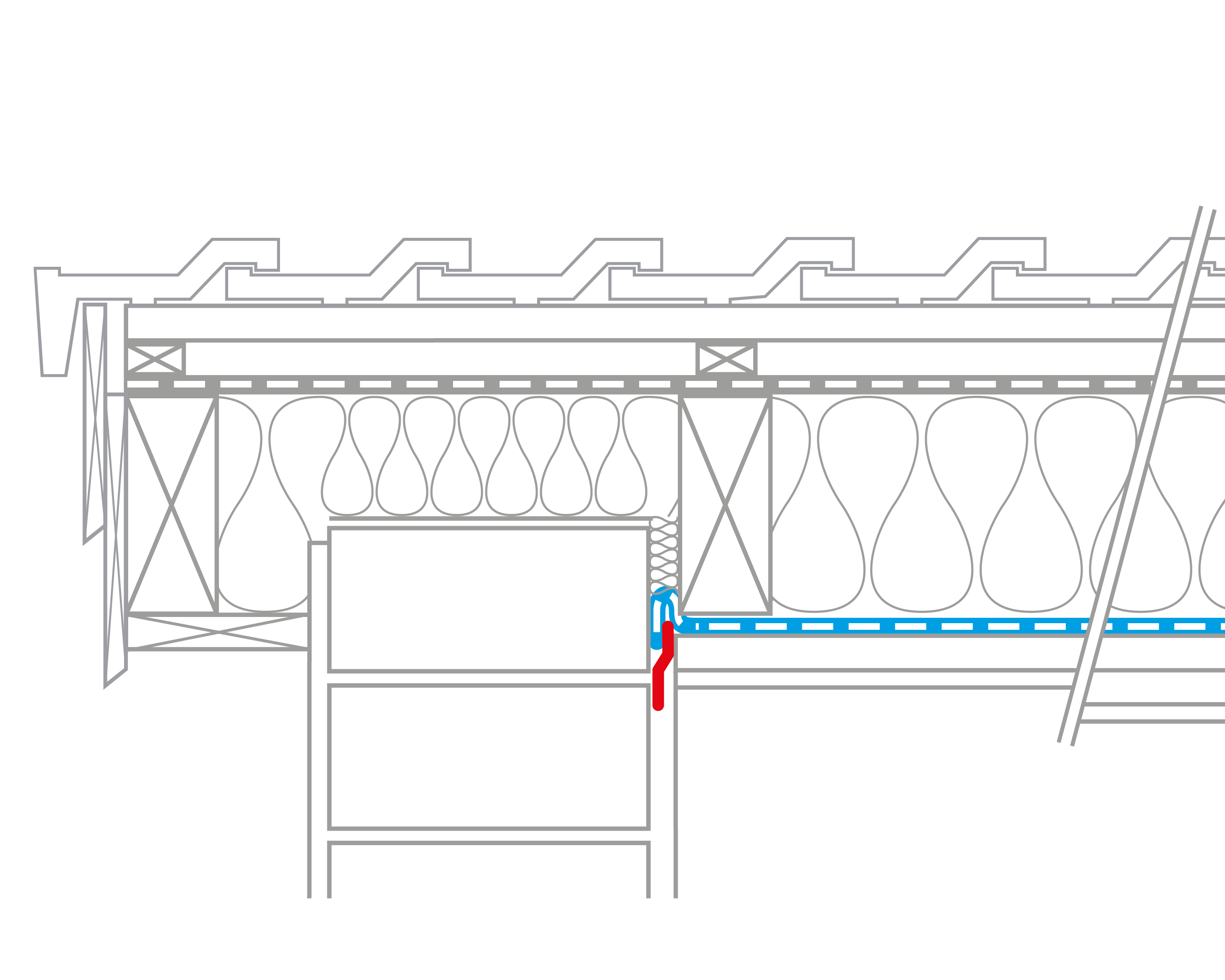 Nach Einbau der Luftdichtungsebene mit dieser luftdicht verkleben.