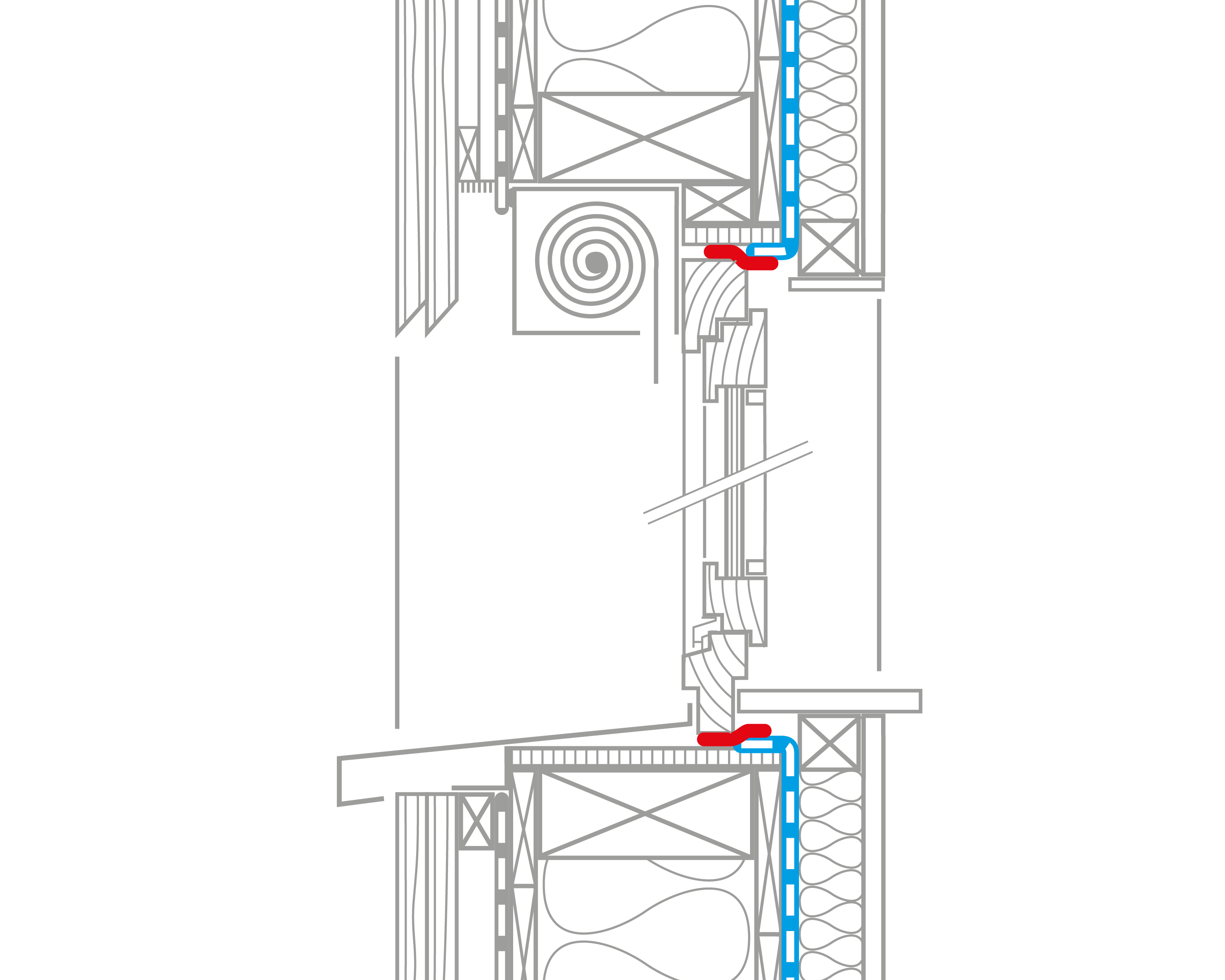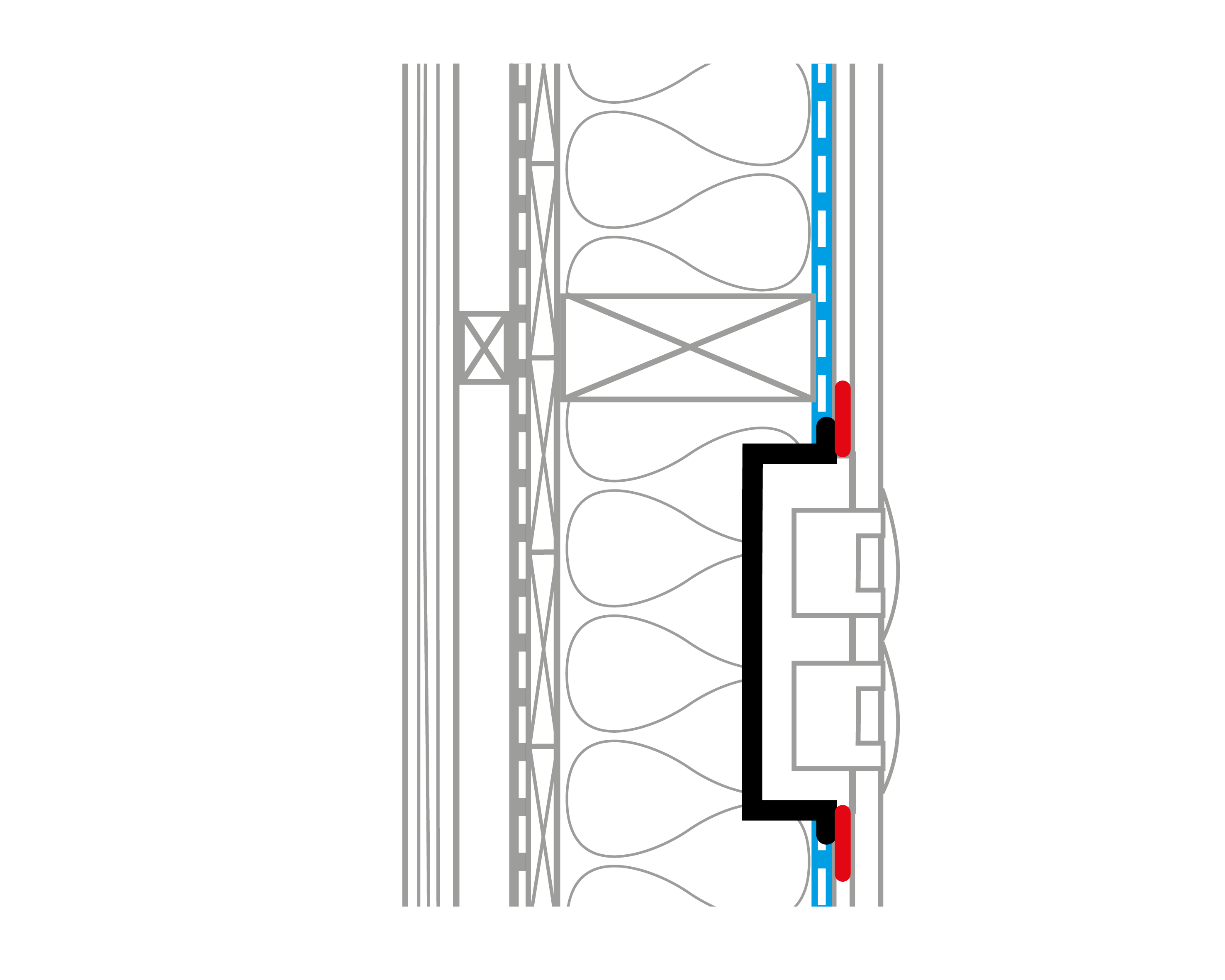 Bei Konstruktionen ohne Installationsebene kann mit der Installationsbox INSTAABOX Raum für Gerätedosen o. a. geschaffen werden. Dazu wird sie auf der vorhandenen Dampfbrems- und Luftdichtungsebene (z. B. pro clima INTELLO oder DB+) positioniert und mit dieser luftdicht verbunden. Dabei werden die Anforderungen der DIN 4108-7, SIA 180 und ÖNORM B 8110-2 in Bezug auf die Luftdichtheit beim Einsatz herkömmlicher Gerätedosen erfüllt.