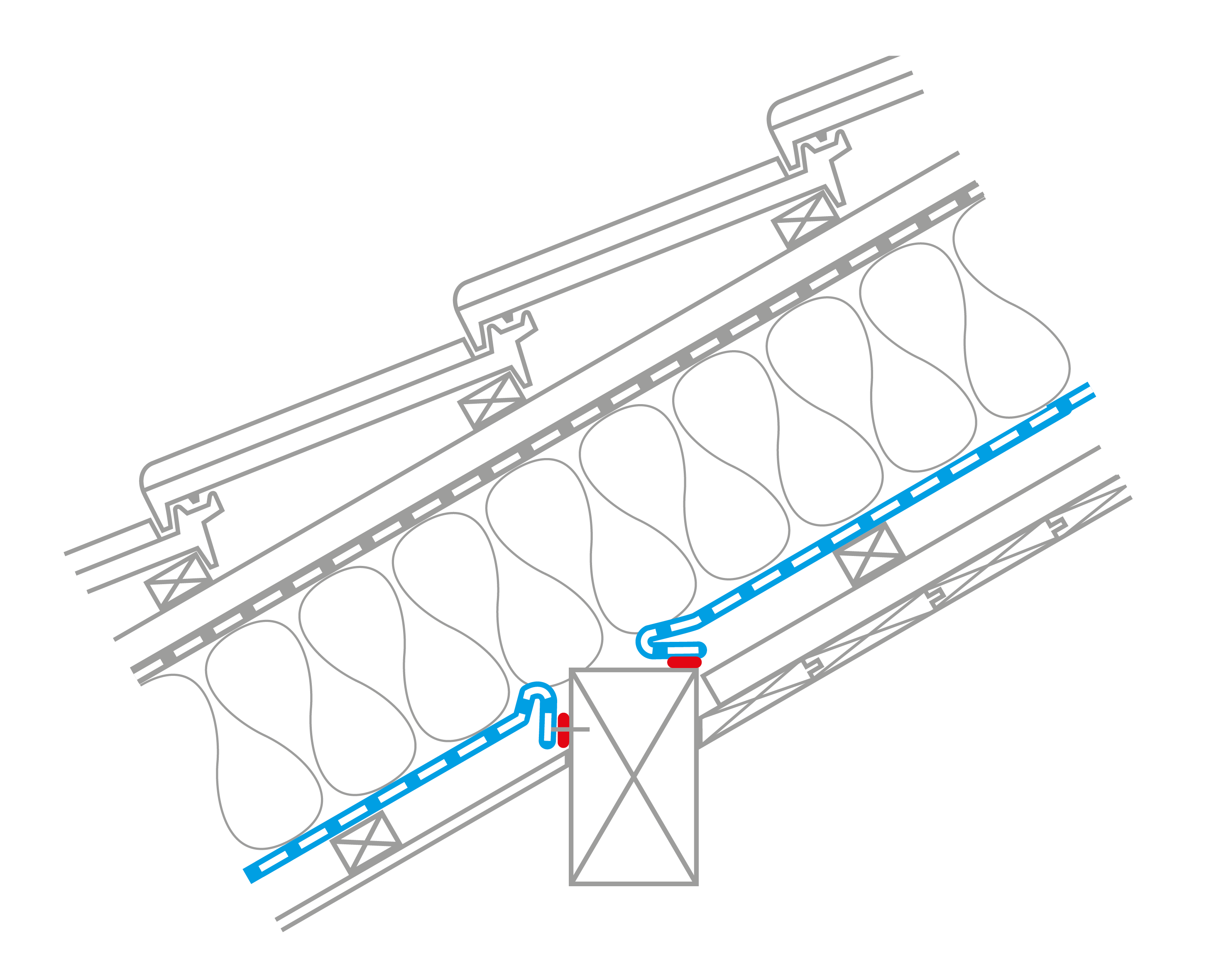 Durchdringungen von Rohren oder Kabeln werden mit den Dichtmanschetten pro clima ROFLEX oder KAFLEX luftdicht und feuchtegeschützt abgedichtet.