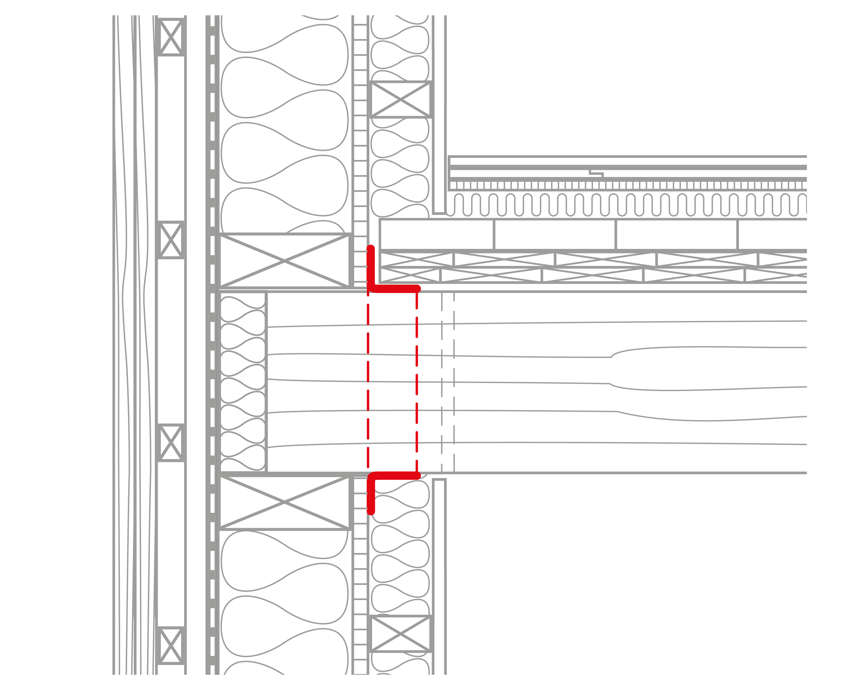 Einfacher kann es sein, die Luftdichtungsebene so zu planen, dass sie im Bereich von Geschossdecken nicht unterbrochen werden muss.