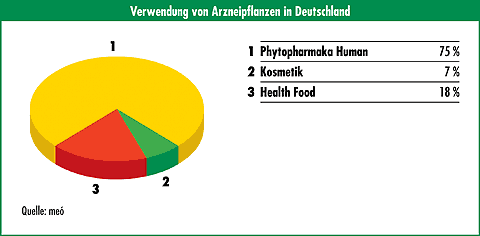 Experten schätzen, dass weltweit etwa 40.000 Pflanzenarten medizinisch genutzt werden. Die rund 100 Arten, deren Wirkstoffe bekannt sind und industriell weiterverarbeitet werden, machen also nur einen kleinen Anteil aus. Mit rund 75 Prozent gehen Arzneipflanzen in Deutschland vor allem in die Produktion von pflanzlichen Arzneimitteln. Daneben gewinnen Kosmetika und in wachsendem Umfang auch Nahrungsergänzungsmittel an Bedeutung.