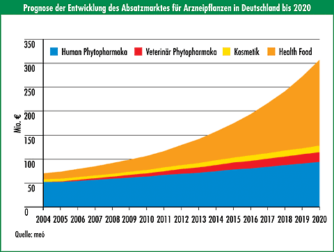 Prognose der Entwicklung des Absatzmarktes für Arzneipflanzen bis 2020 (meó) (Quelle: FNR) |