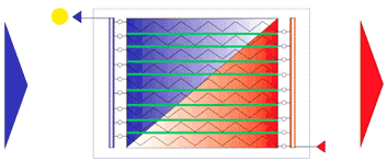 - Erdwärmetauscher: Horizontal (Erdkollektoren) oder vertikal (Erdsonden) verlegte Kunststoffrohre bilden einen Wärmeübertrager mit dem Untergrund. Die Leistungsfähigkeit dieses Wärmetauschersystems ist abhängig von den thermischen Eigenschaften des Untergrundes und der Grundwasserverhältnisse. Je tiefer die Rohre verlegt sind, desto unabhängiger ist das System von der klimatischen Umgebung.