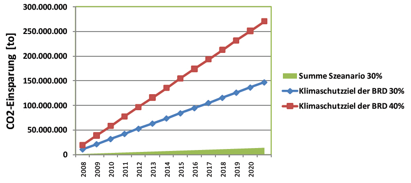30 % - 40 %ige Reduktion der Treibhausgase um 147 bis 270 Mio. Tonnen pro Jahr