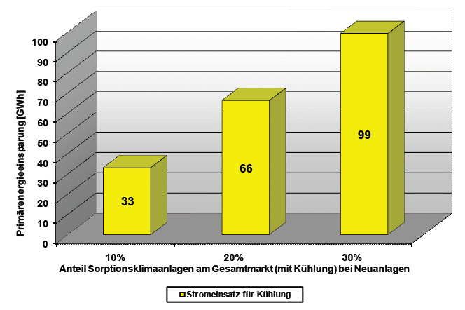 - Mögliche Primärenergieeinsparung durch Sorptionsklimasysteme