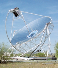 Bei diesem Konzept konzentriert ein zweiachsig der Sonne nachgeführter Parabolspiegel die Sonnenenergie direkt auf einen im Brennpunkt des Spiegels aufgehängten Absorber. In diesem wird ein Arbeitsgas (Helium, Luft) zum Antrieb eines Stirlingmotors oder einer Gasturbine – die unmittelbar neben dem Absorber angeordnet sind – auf bis zu 900°C erhitzt.