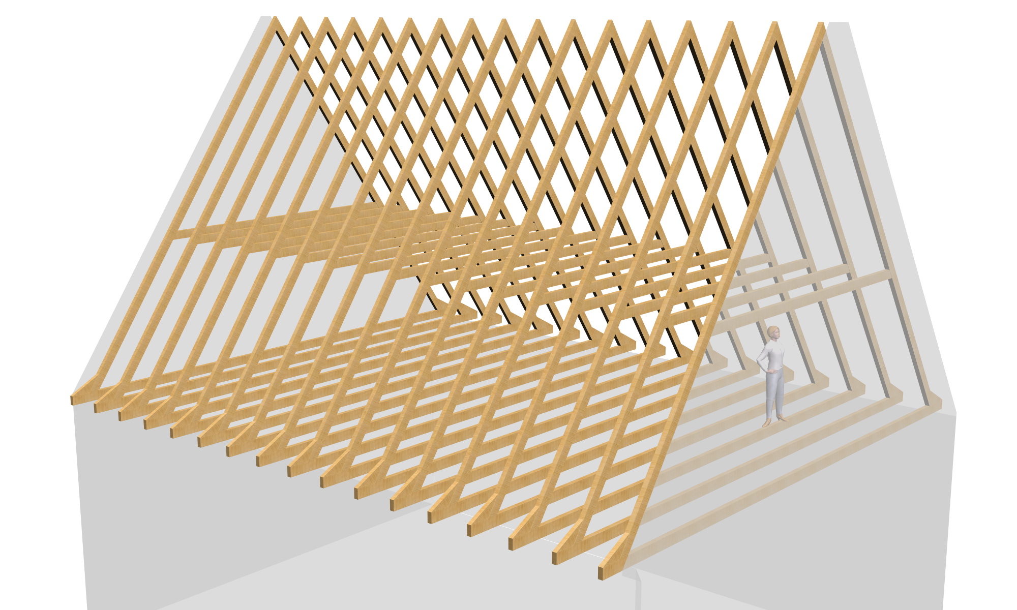 Diese Bauweise kommt grundsätzlich ohne Pfetten aus.