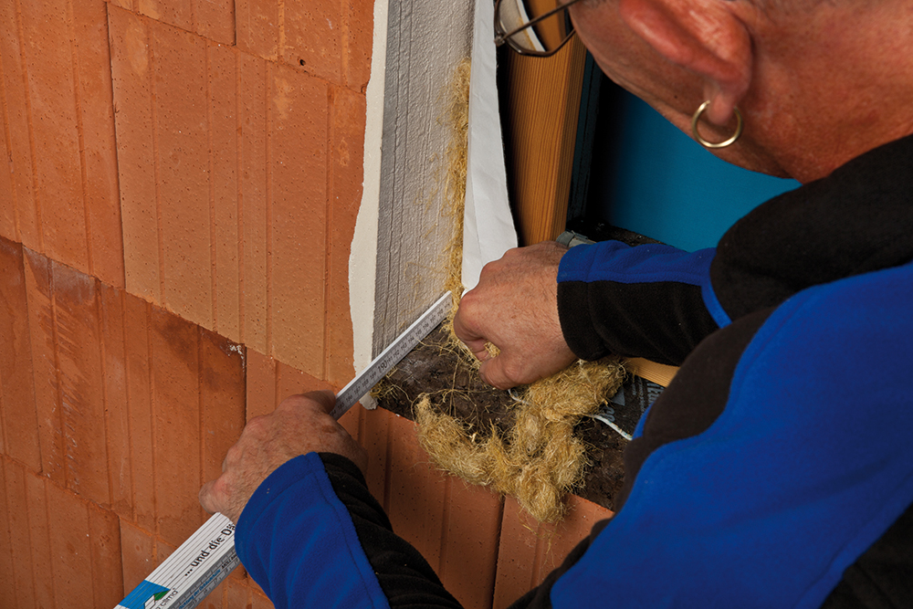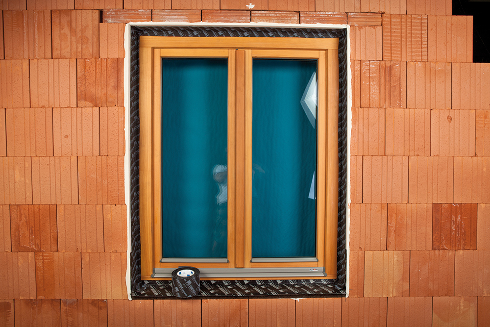 Putz- + Fensteranschl. innen/außen ... vollflächig klebend ... zusätzl. Klebezone ... und vorgefaltet |