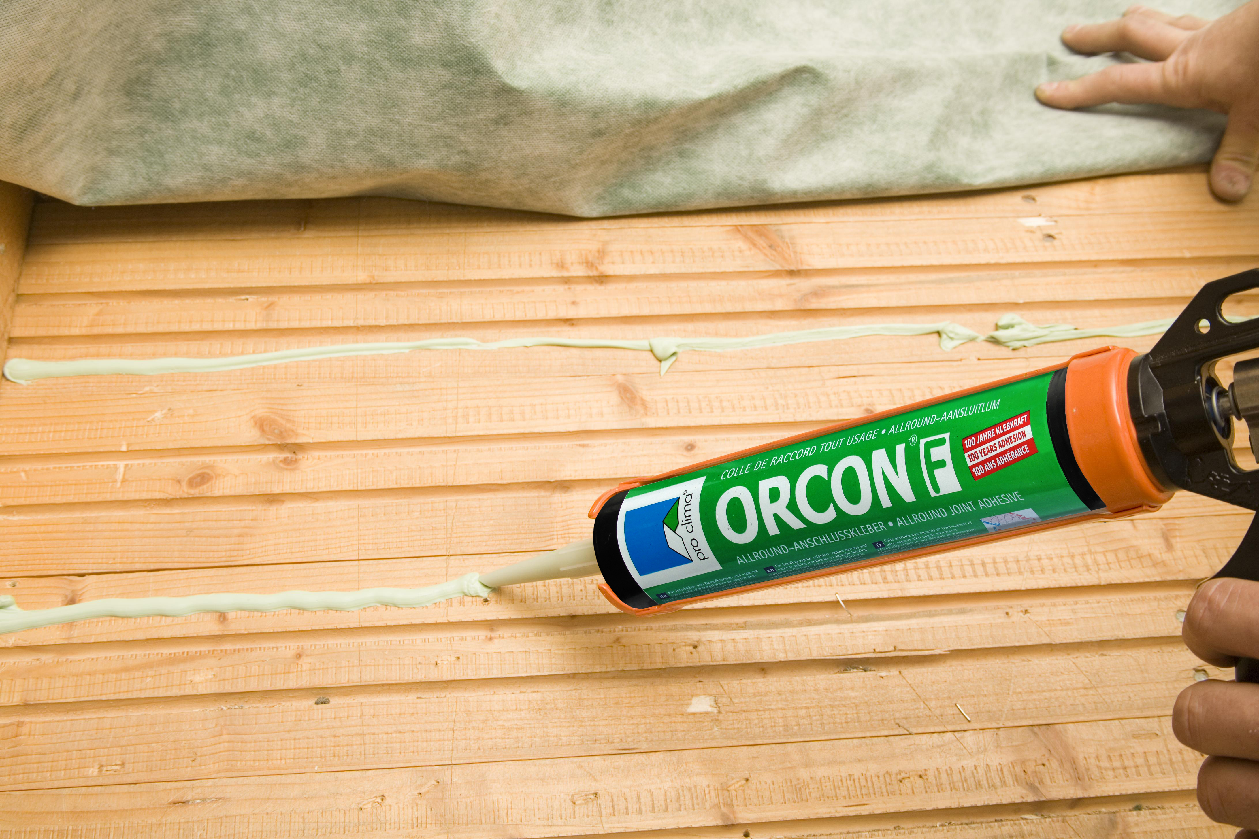 Die dauerhafte Verklebung wird erreicht auf allen pro clima Innen- und Außenbahnen, anderen Dampfbrems- und Luftdichtungsbahnen (z. B. aus PE, PA, PP und Aluminium) bzw. Unterdeck-/Unterspannbahnen und Wandschalungsbahnen (z. B. aus PP und PET).