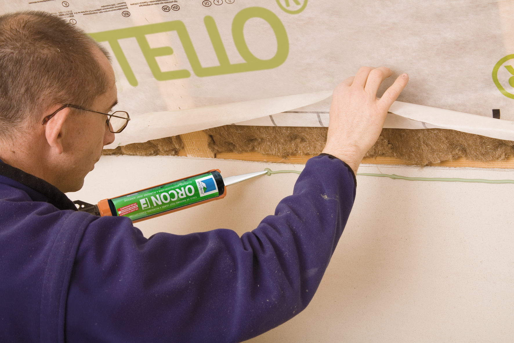 Nach dem Andrücken sollte die Kleberaupe noch mindestens eine Dicke von 2-3 mm aufweisen. - Dampfbremse mit einer Dehnschlaufe anschließen, damit Bauteilbewegungen ausgeglichen werden können.