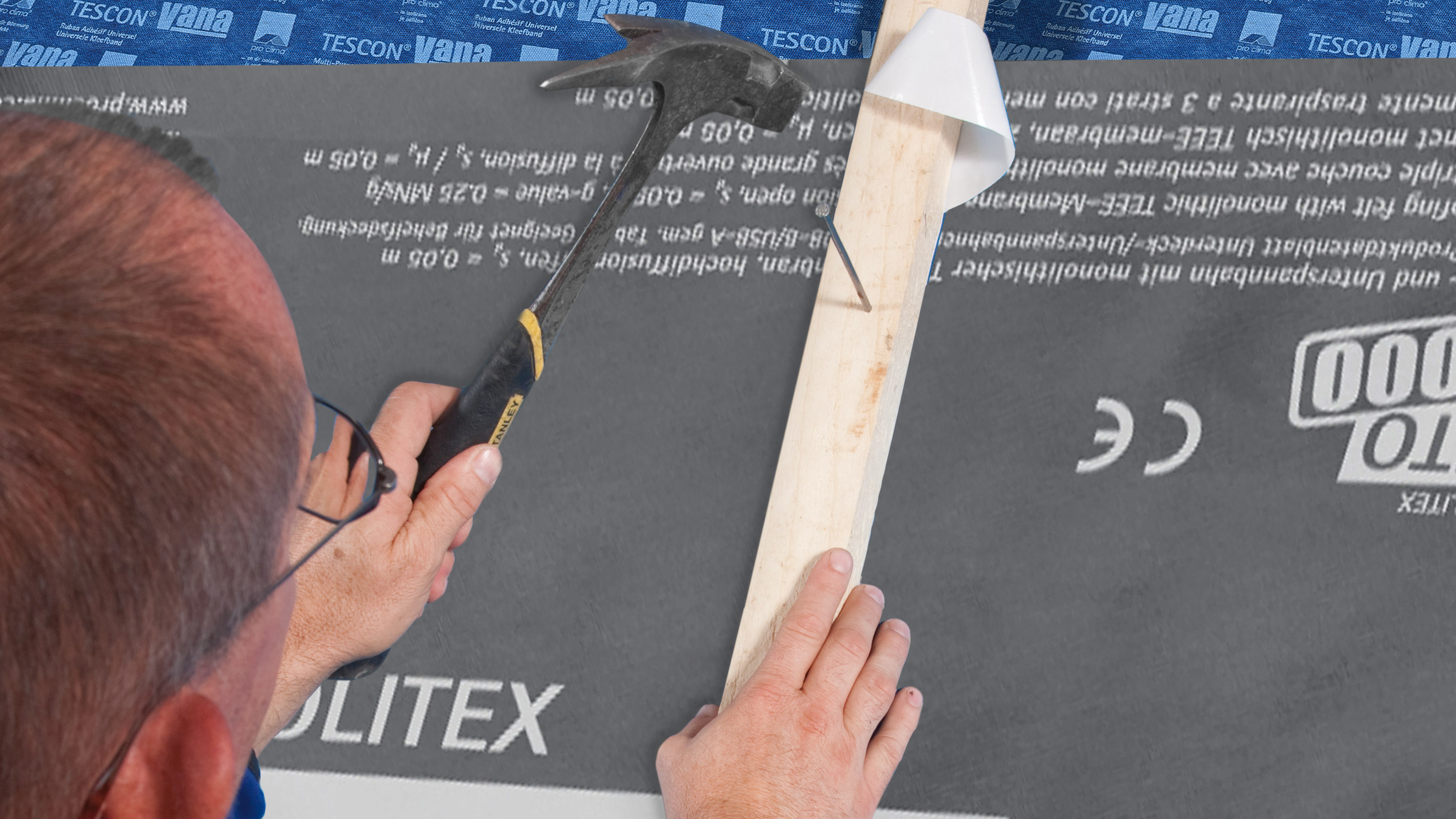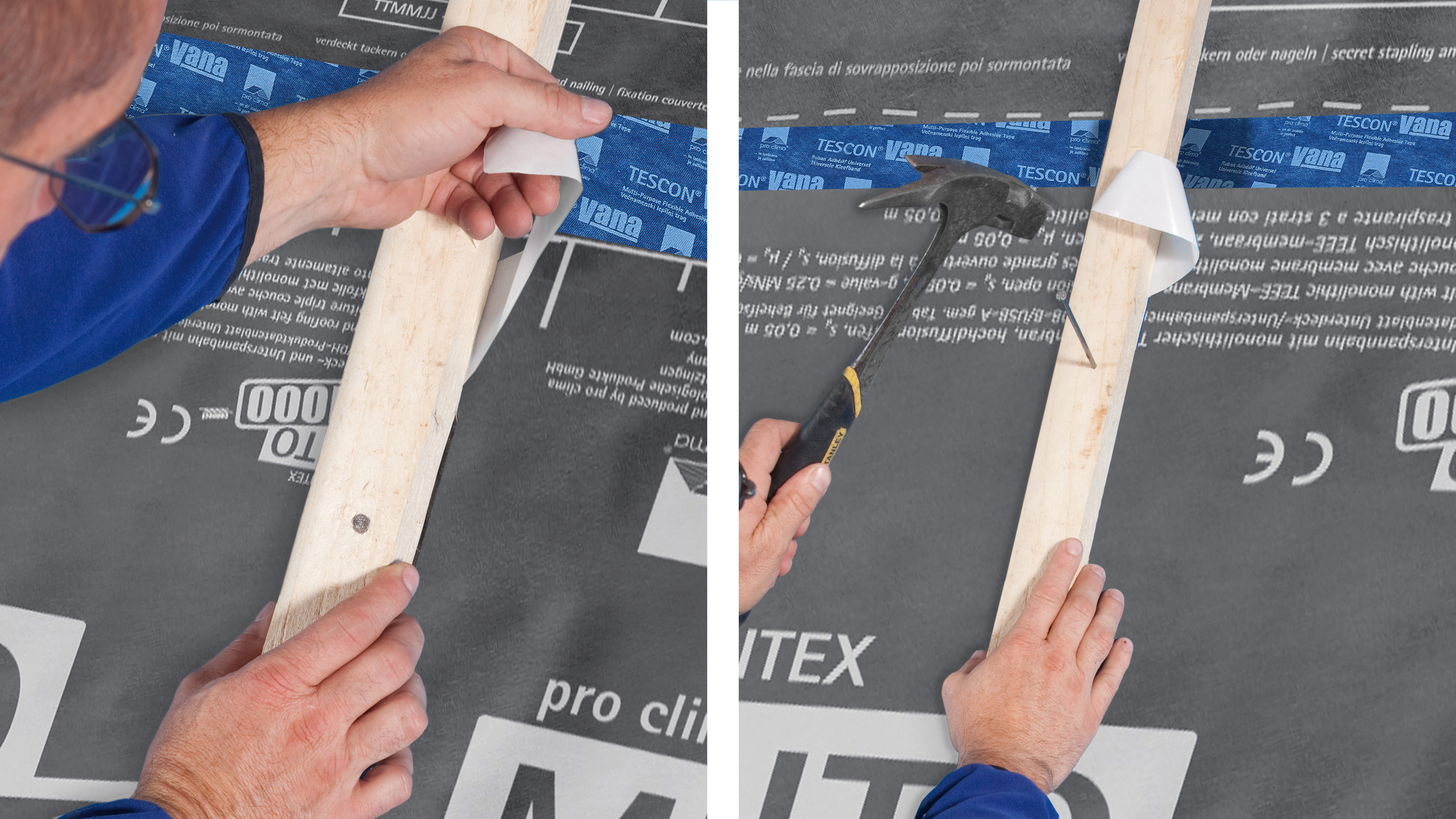 Die dau­er­haf­te Na­gel­dicht­heit wird er­reicht auf al­len pro cli­ma Außen­bah­nen, an­de­ren Un­ter­deck-/Unterspannbahnen und Wand­scha­lungs­bah­nen (z. B. aus PP und PET) so­wie mit MDF- und Holz­fa­serun­ter­deck­plat­ten.