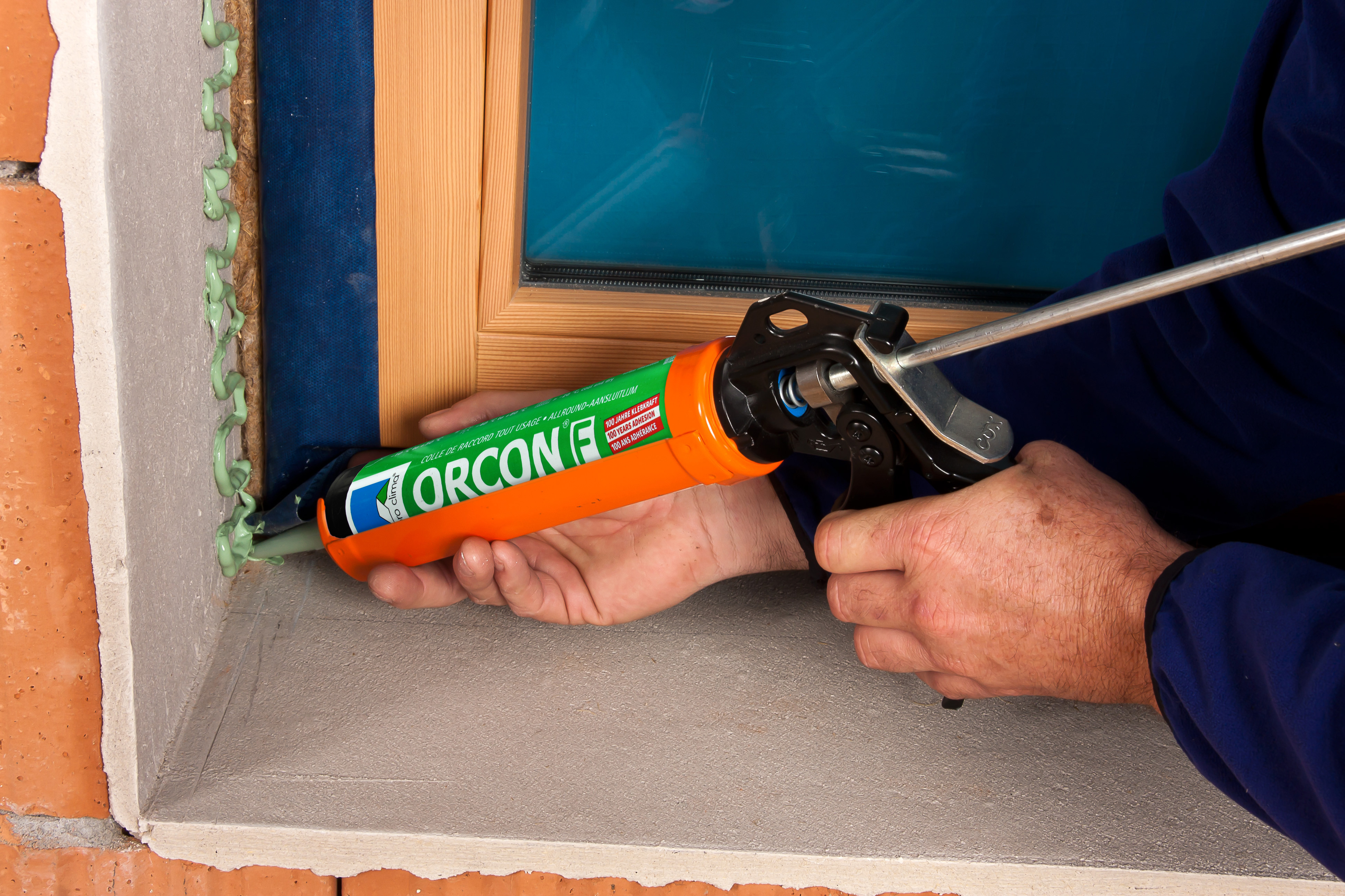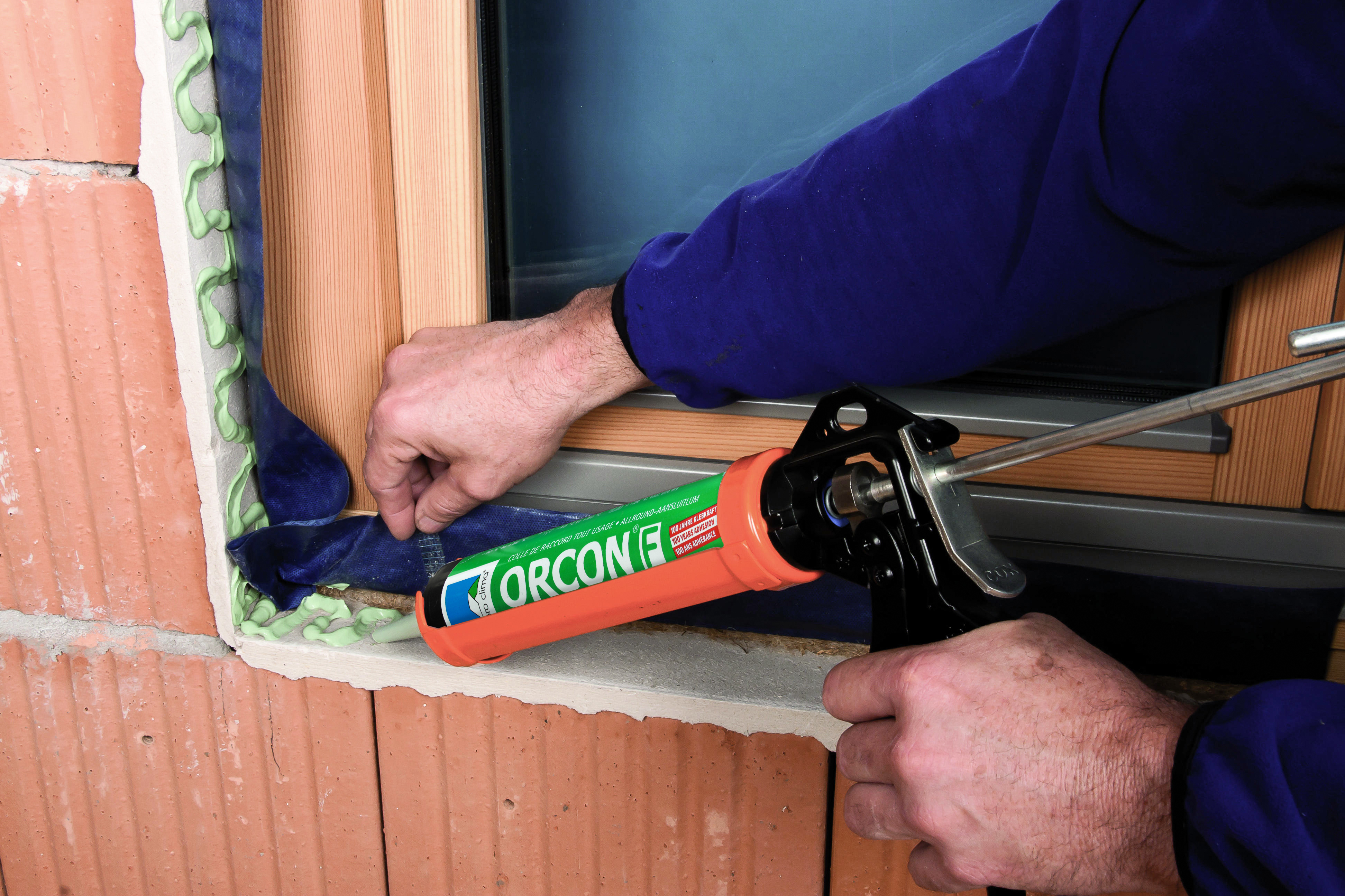 Für die Anschlussverklebung auf Mauerwerk bzw. Beton oder rauen Untergründen ORCON F (oder ORCON CLASSIC) verwenden.