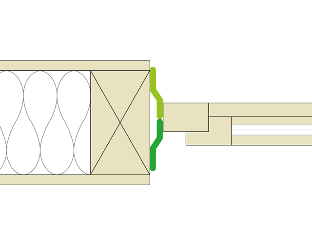 - Im Eckbereich bewirkt die Schlaufenüberfaltung eine sichere Luftdichtung.