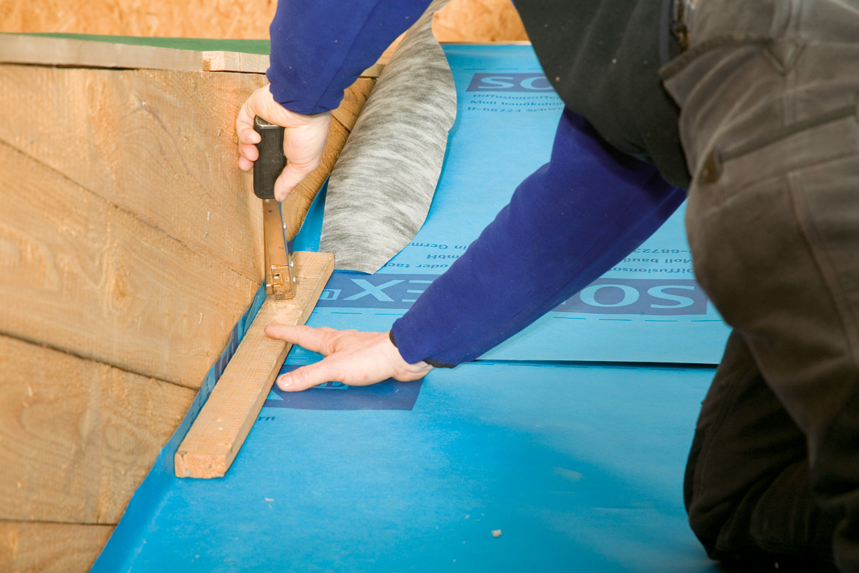 Im Bestand sind Dachkonstruktionen ohne Unterdeckung und damit auch ohne Konterlattungsebene keine Seltenheit. Sollen diese Situationen gedämmt werden, empfiehlt es sich für die Sicherheit der Konstruktion zunächst eine äußere Winddichtungsebene nachzurüsten.