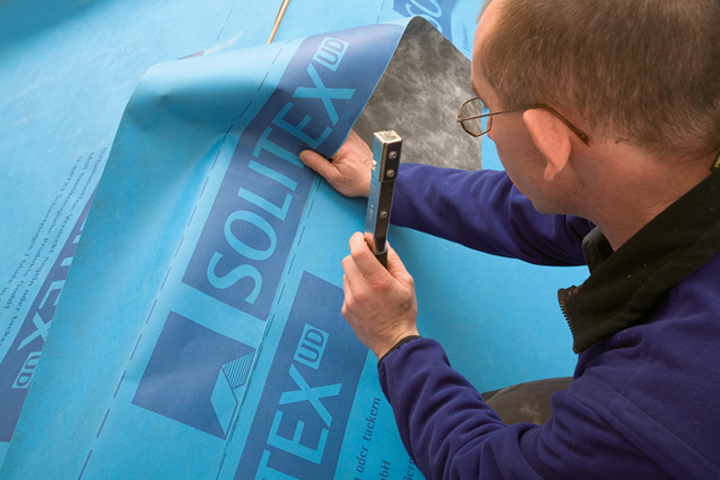 SOLITEX PLUS Bahnen sollen mit der bedruckten Seite zum Verarbeiter hin zeigend verlegt werden.