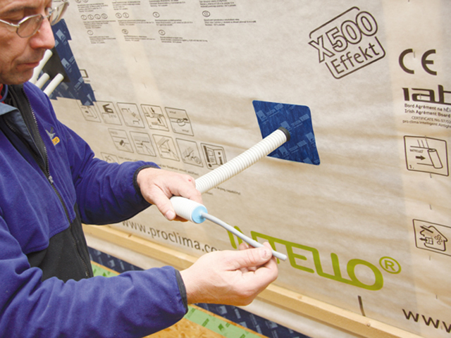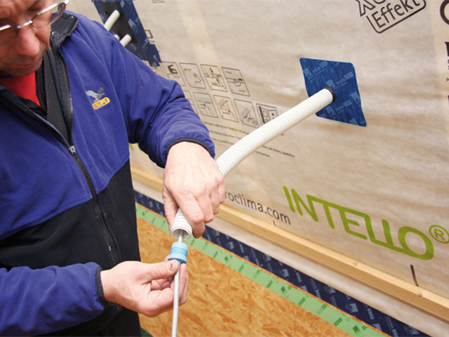 • Leerrohre schnell und sicher in die Luft- bzw. Winddichtungsebene einbinden mit den Leerrohrmanschetten