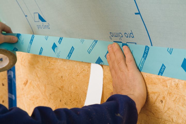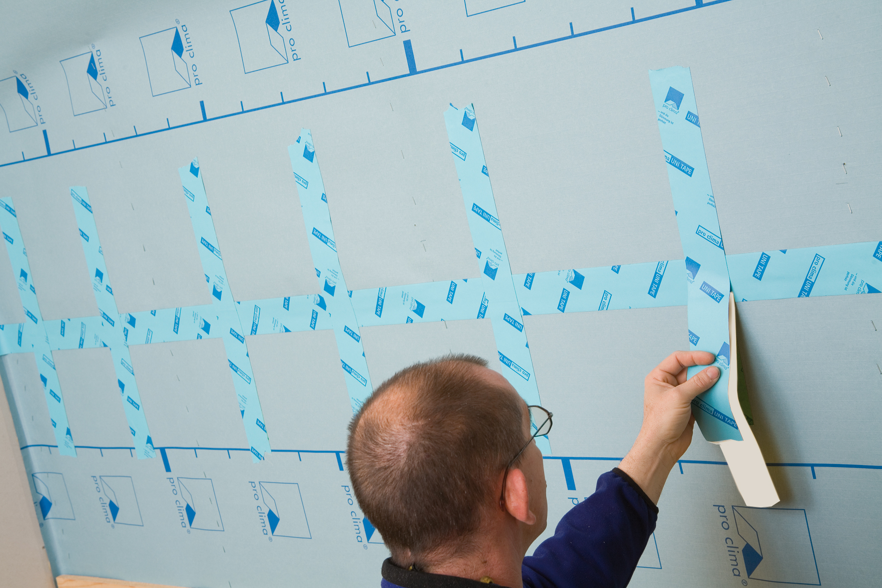 Alternativ kann das Allround-Klebeband pro clima TESCON No.1 eingesetzt werden.