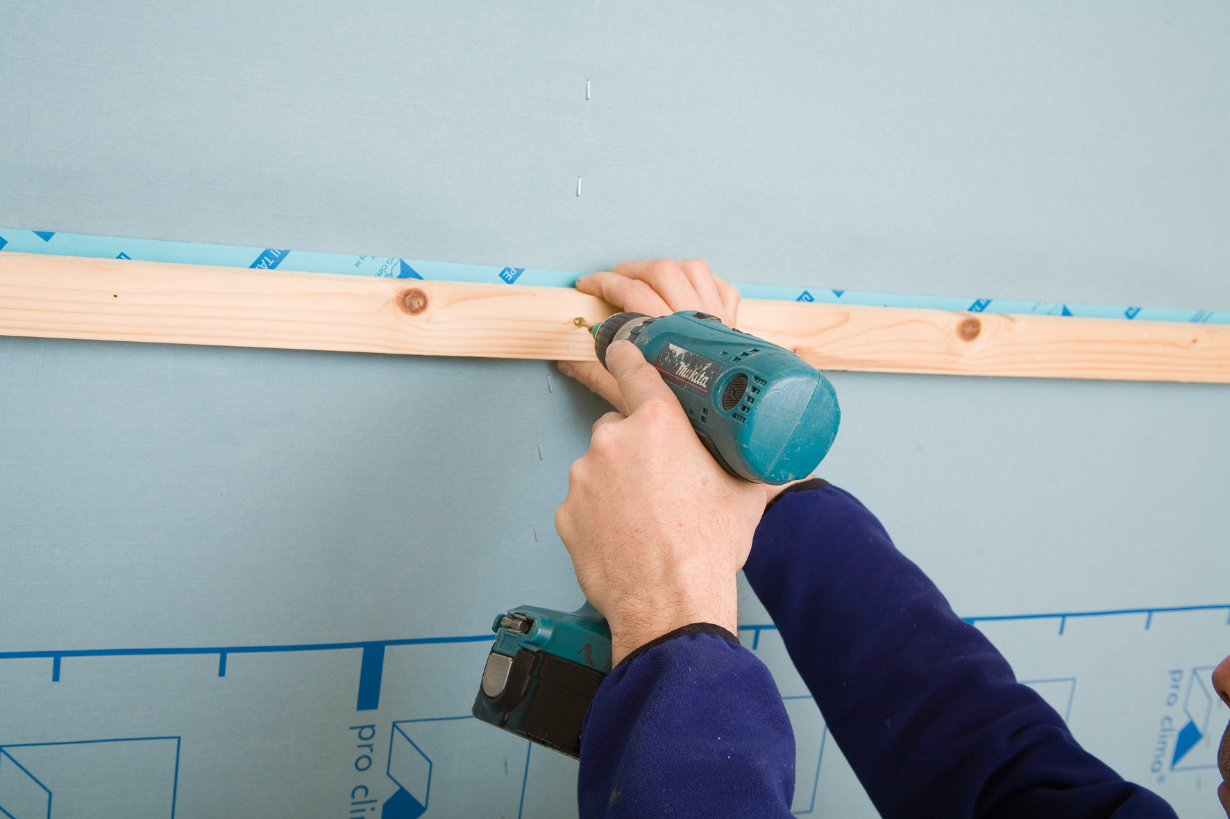 - Die Befestigung der Dampfbremsbahnen muss mechanisch erfolgen (z. B. Tackerklammern). Ggf. sind die Verklebungen durch Sparschalungen oder Lattenkonstruktionen zu sichern.