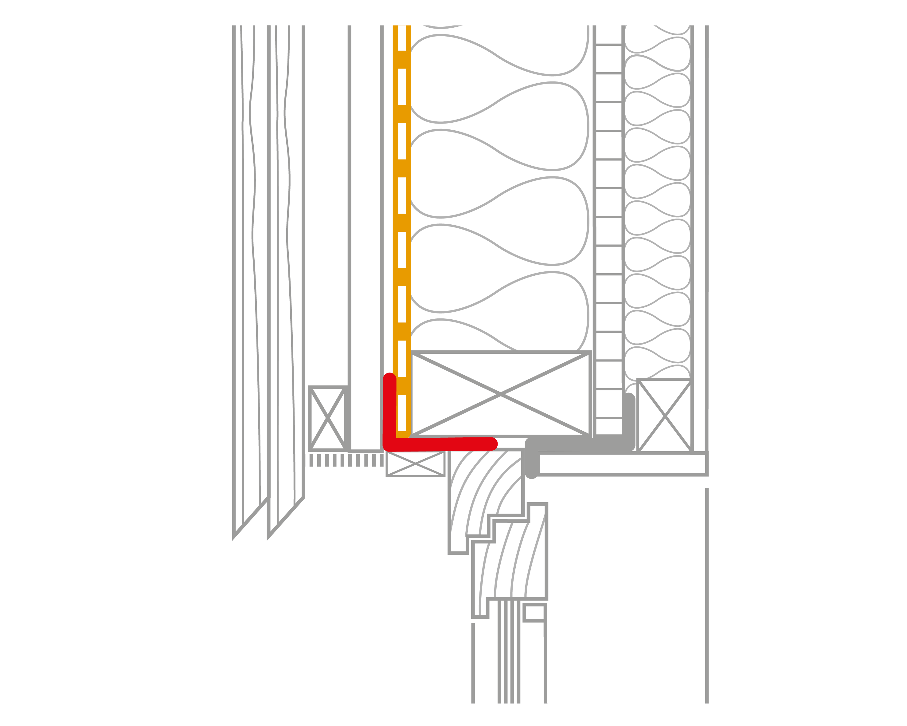 Abb. 38: Fassade Fensteranschluss, Fenster mittig im Ständerwerk