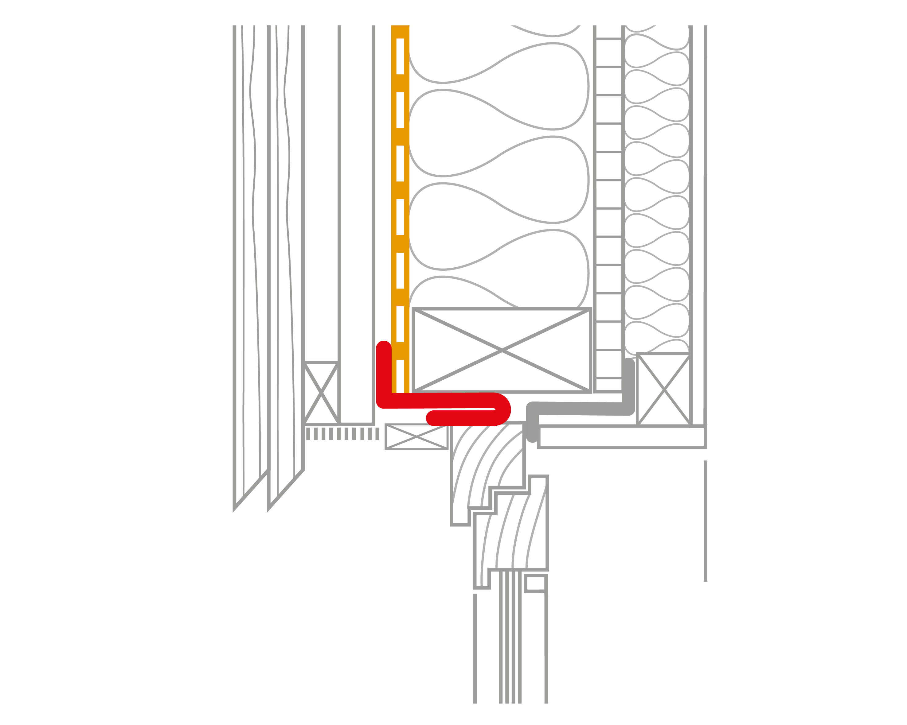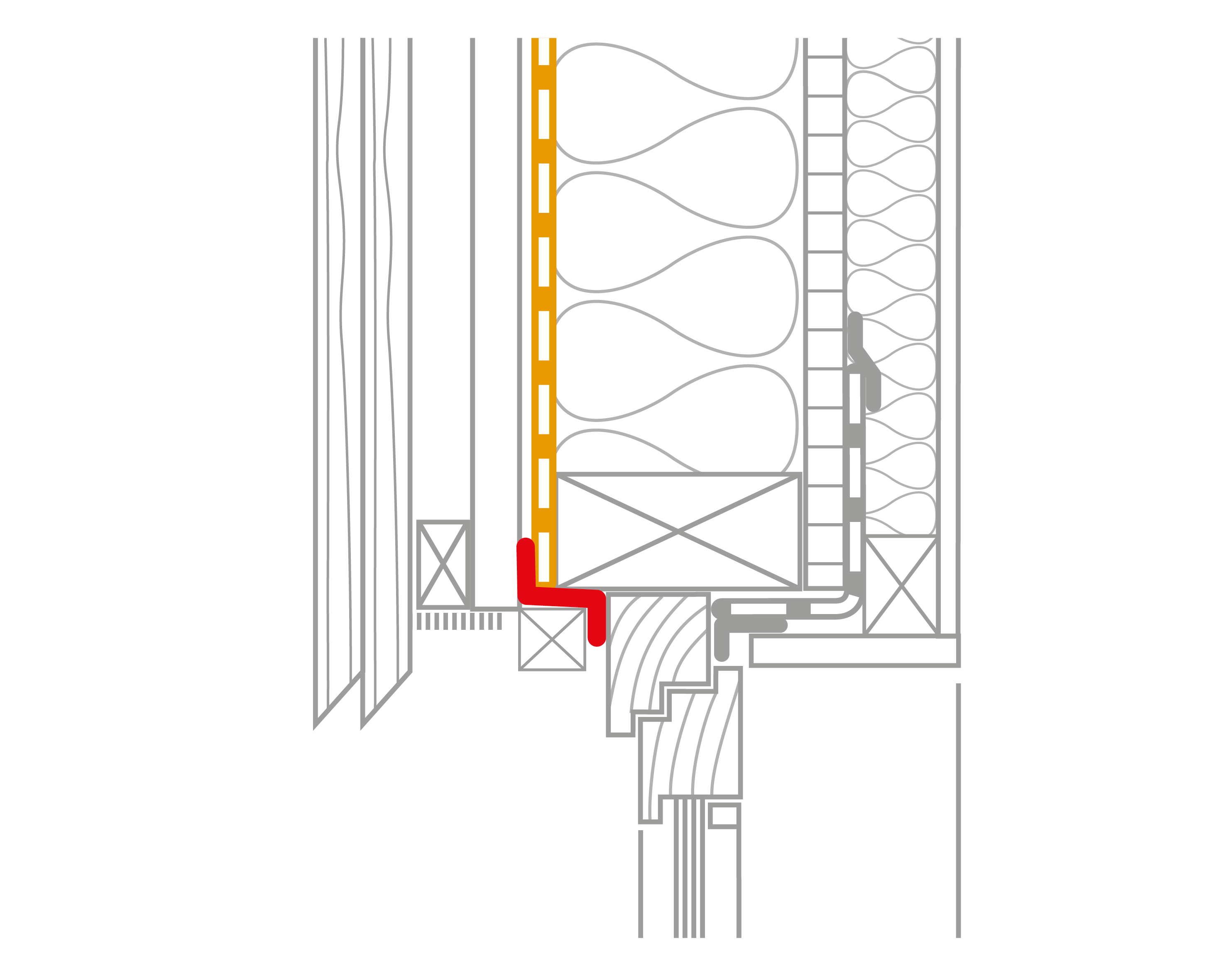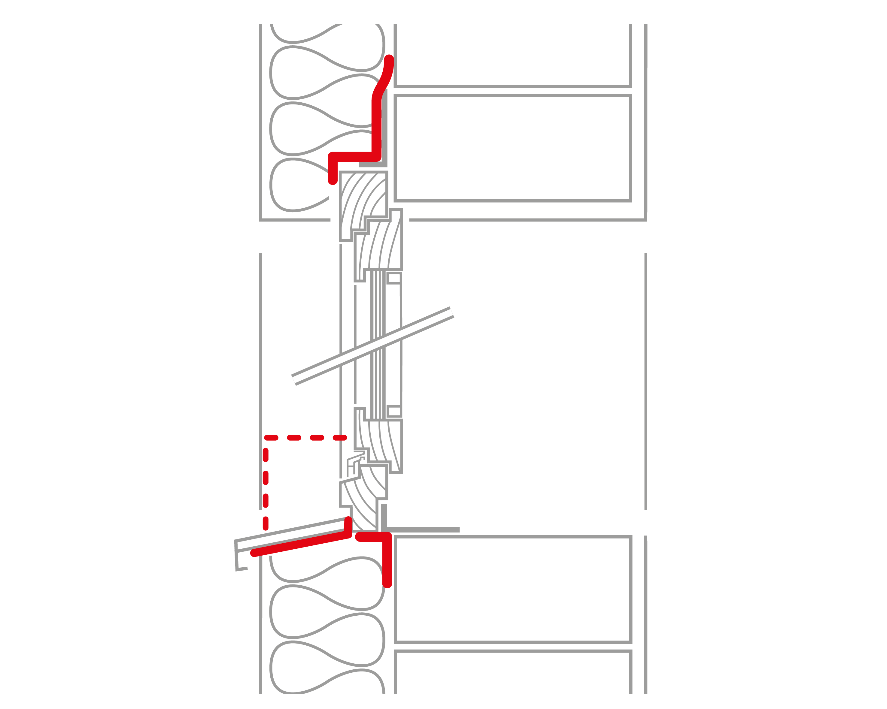 Abb. 39: Fassade Fensteranschluss, Fenster mittig im Ständerwerk