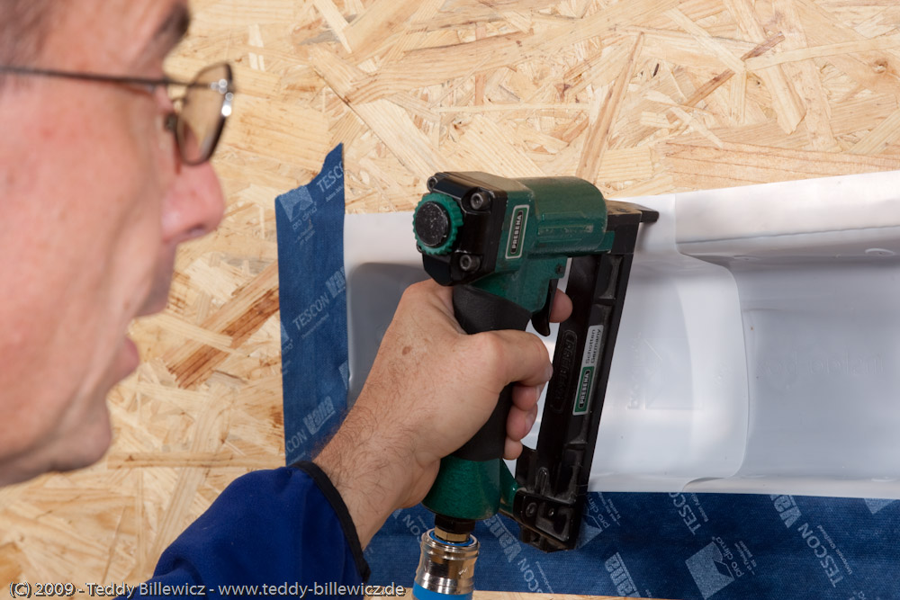 Klebebänder fest anreiben. Auf ausreichenden Gegendruck achten.