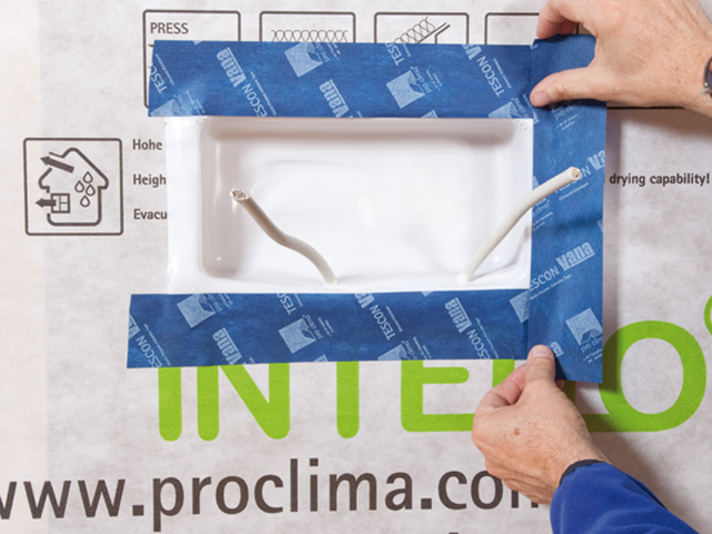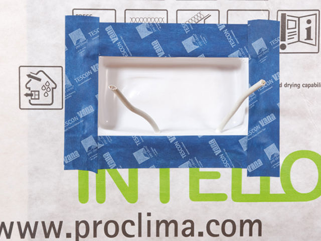 Die INSTAABOX kann mit allen bauüblichen luftdichten Untergründen kombiniert werden. Empfehlungen für geeignete Verbindungsmittel zum Anschluss an die Luftdichtungsebene (z. B. Dampfbremse, Holzwerkstoffplatte oder mineralischer Untergrund) enthält die pro clima Anwendungsmatrix.