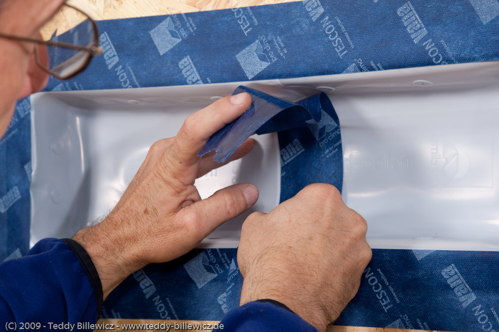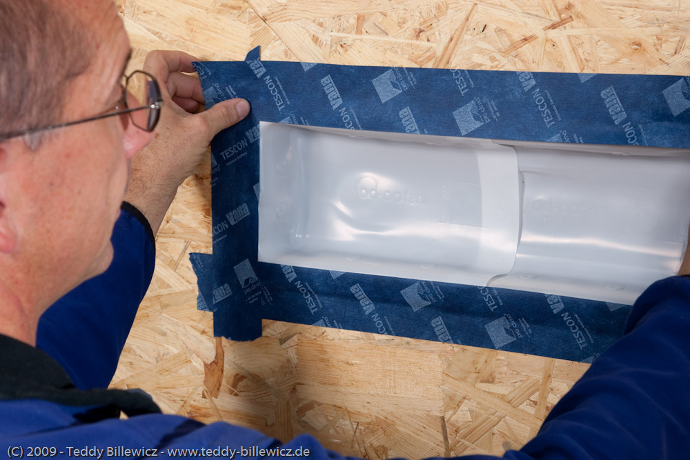 Putz- + Fensteranschl. innen/außen ... vollflächig klebend ... zusätzl. Klebezone ... und vorgefaltet |