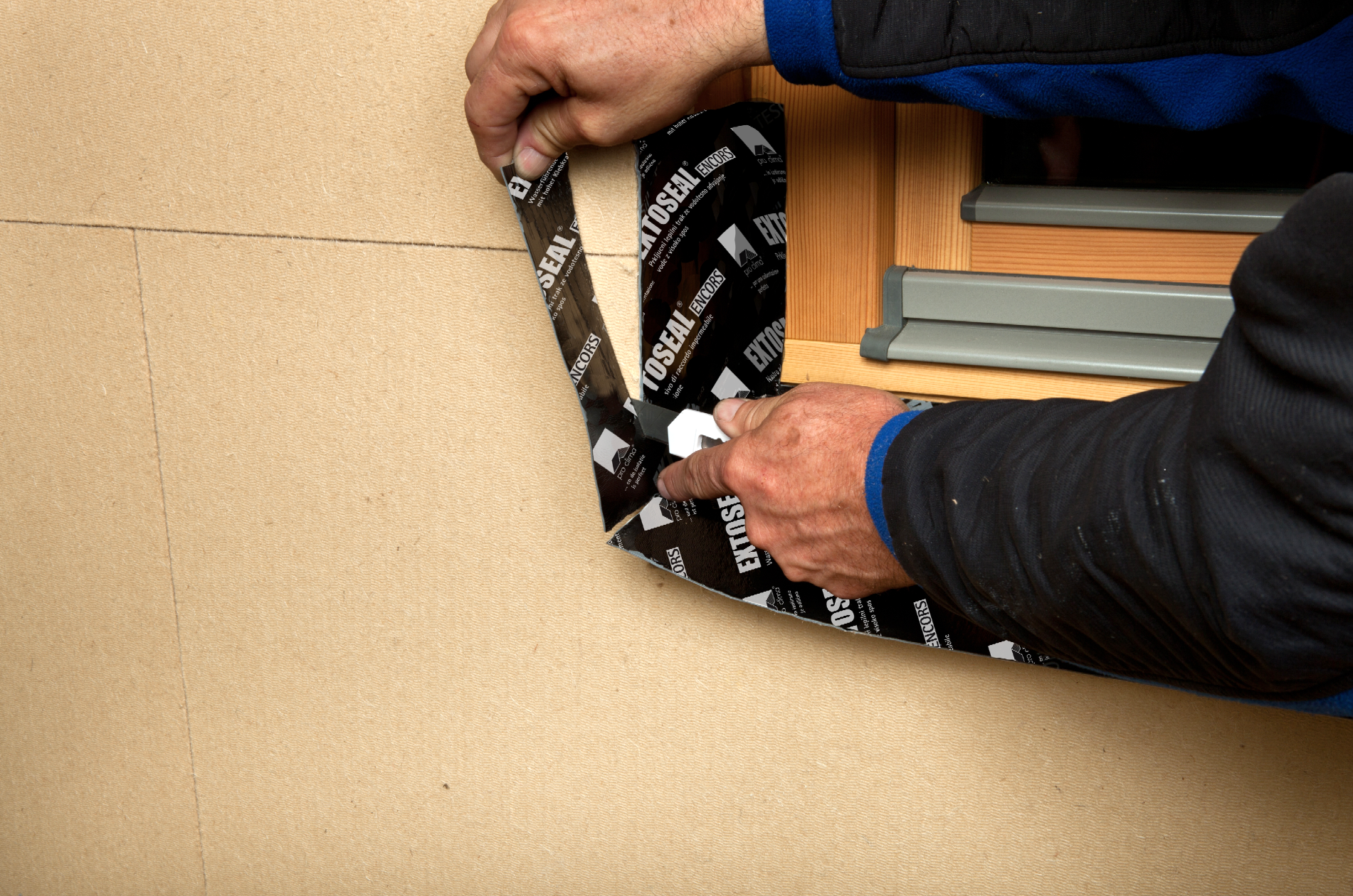 Putz- + Fensteranschl. innen/außen ... vollflächig klebend ... zusätzl. Klebezone ... und vorgefaltet |